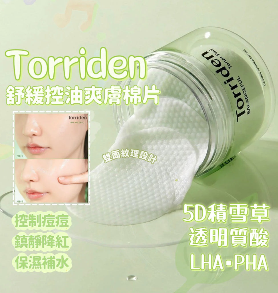 Torriden Centella Asiatica Vegan Toner Cotton Pads (Made in Korea, 60 pads per set, 2 boxes per set)