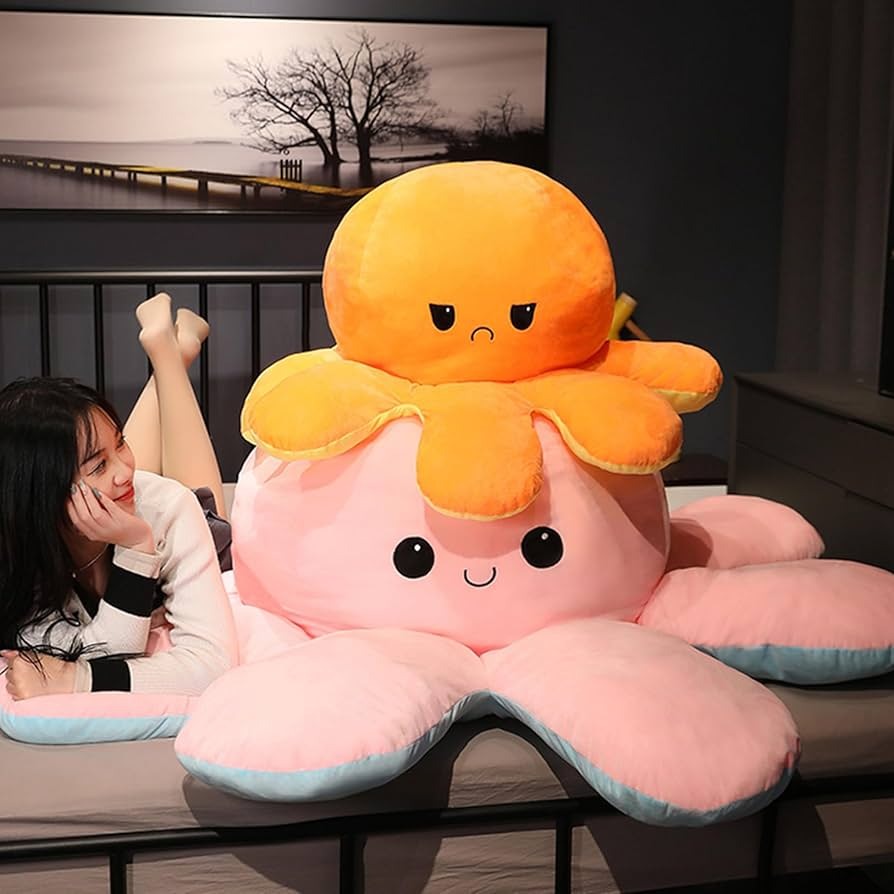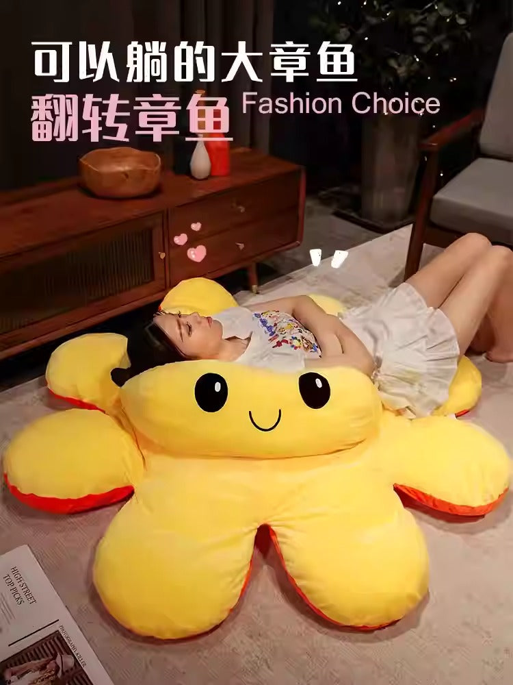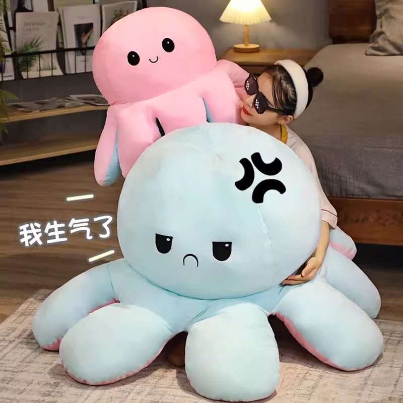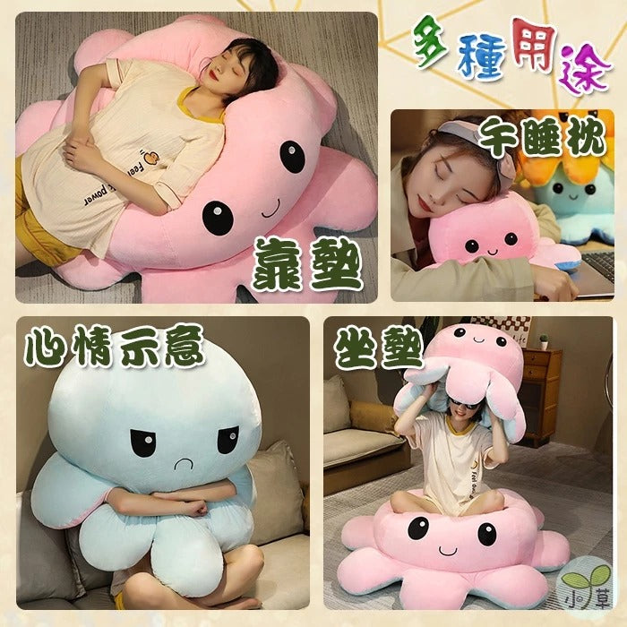 🐙 Cheerful yet charming, this comforting pillow is the ultimate in beauty ! Who could resist a giant octopus that can change its face? This giant, double-sided octopus flip-up stuffed animal is the pinnacle of comfort and cuteness! It can be used as a pillow, a lazy couch, and even a mood barometer, adding a touch of ambiance to your home. 🥰