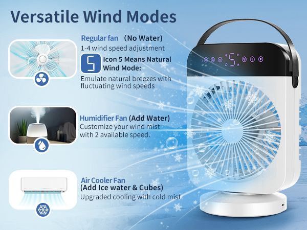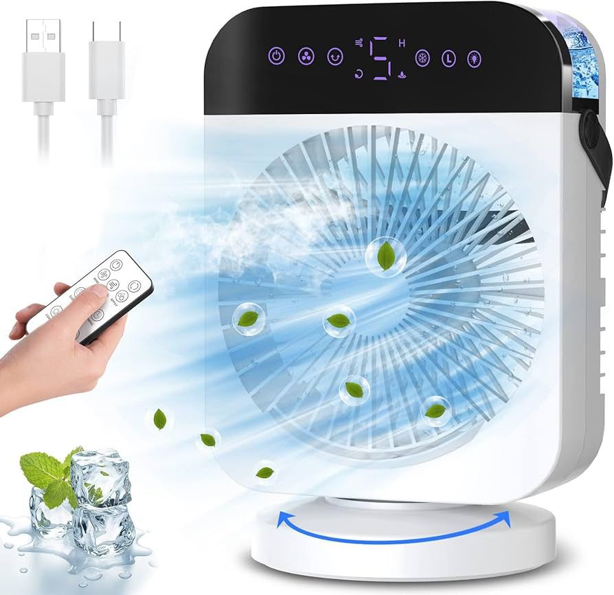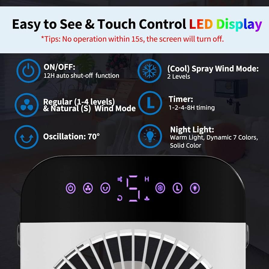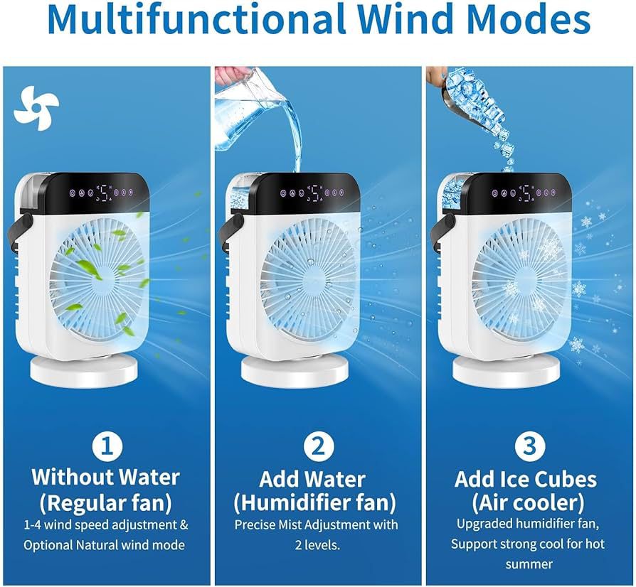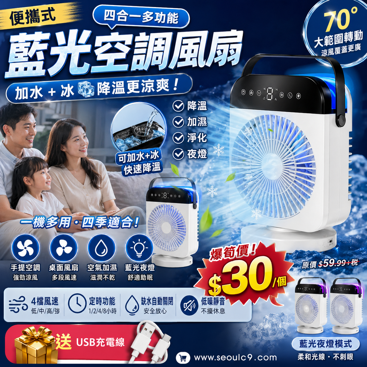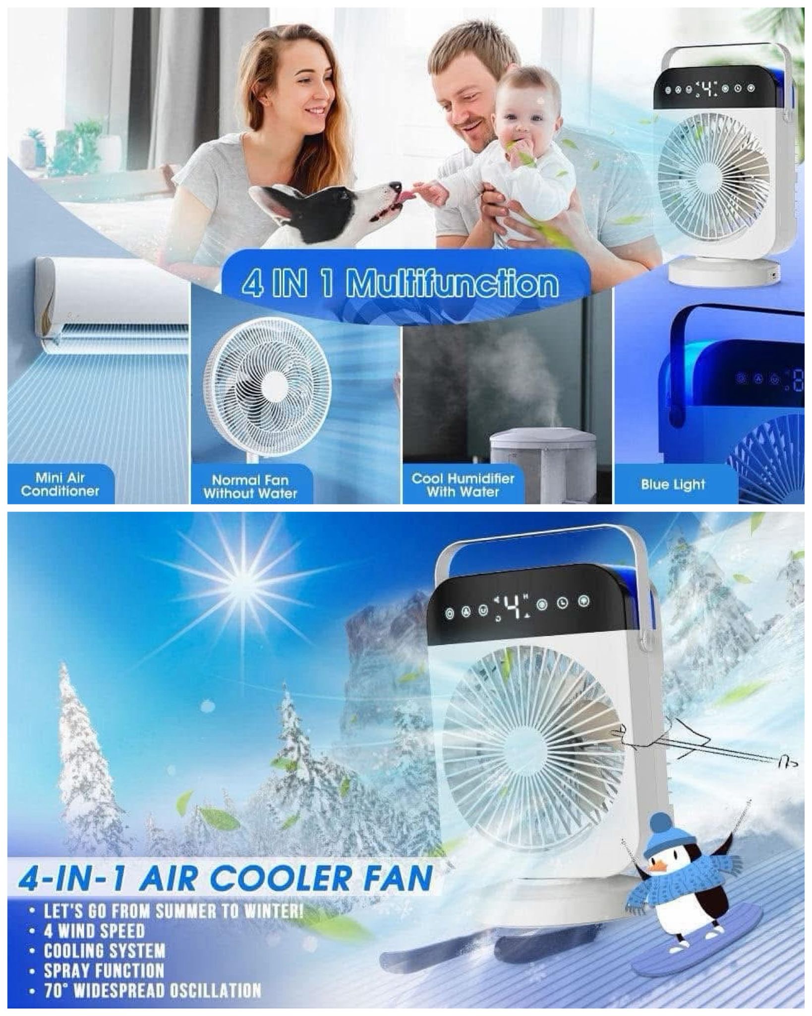 Portable air conditioner + desk fan + air humidifier + blue night light