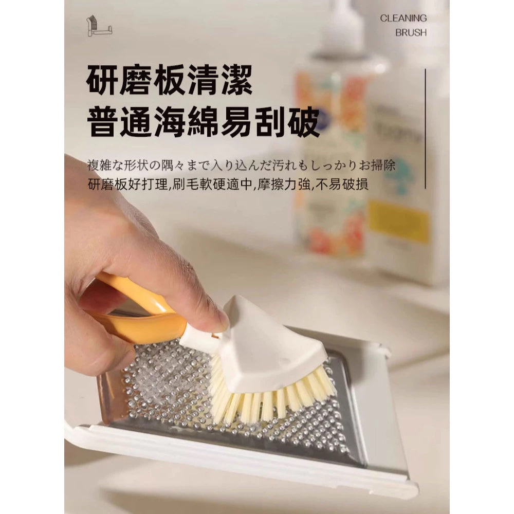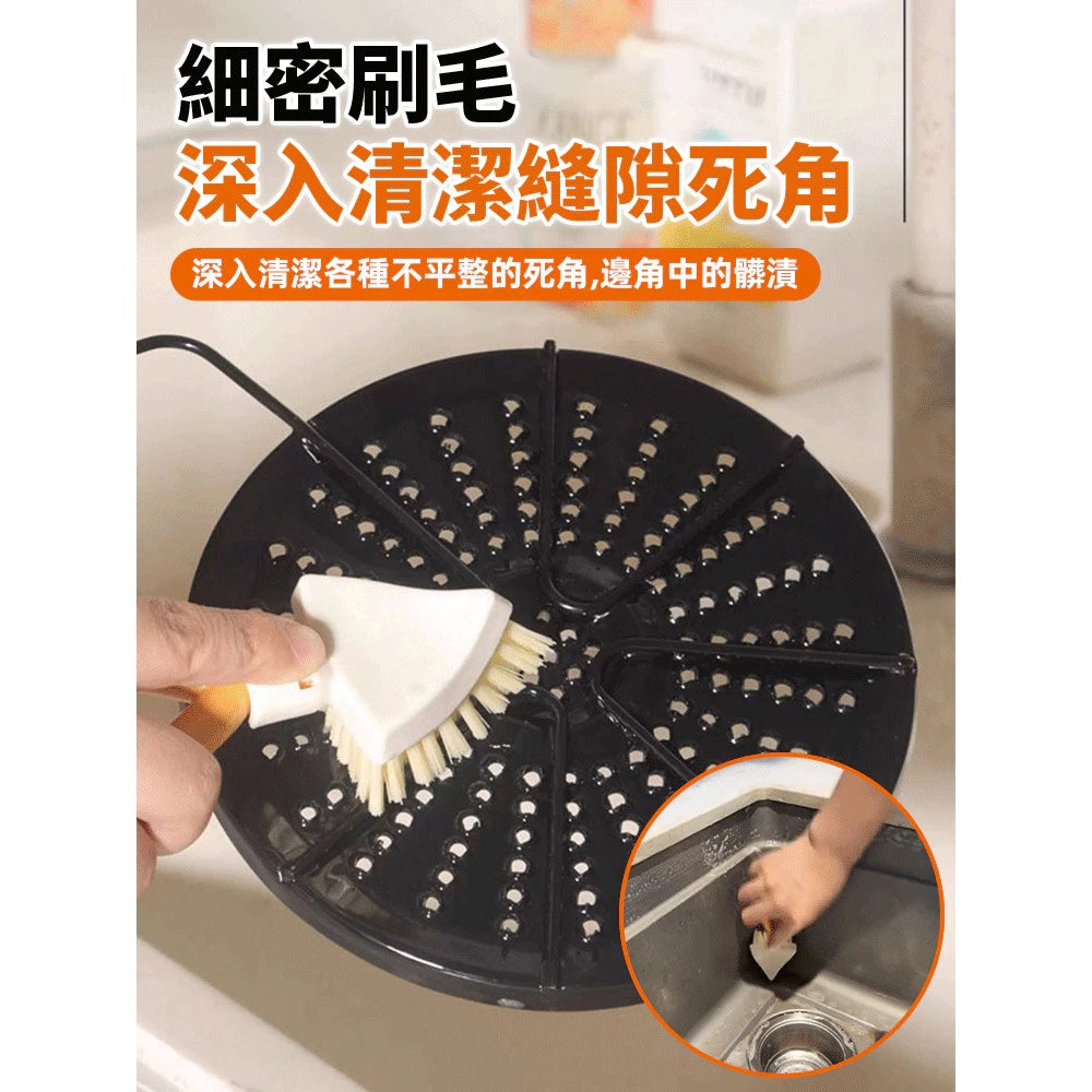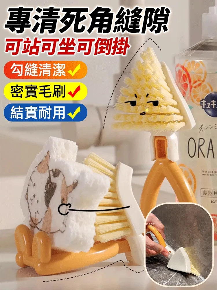 • Can't reach the grease on the sink rims and stove crevices with a rag? The triangular brush head goes right in to "sweep" it all up! 🚰