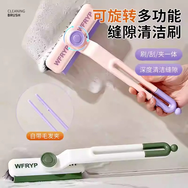 The brush head is adjustable to multiple angles, fitting seamlessly into vertical crevices and angled grooves! It comes with a hidden clip and a small shovel at the end, making cleaning drain hair mess-free and removing stubborn stains with a single swipe. It truly achieves a 3-in-1 "brush + clip + shovel" function, doubling cleaning efficiency! The dense, stiff bristles powerfully remove dirt without scratching surfaces, offering both cleaning power and protection!