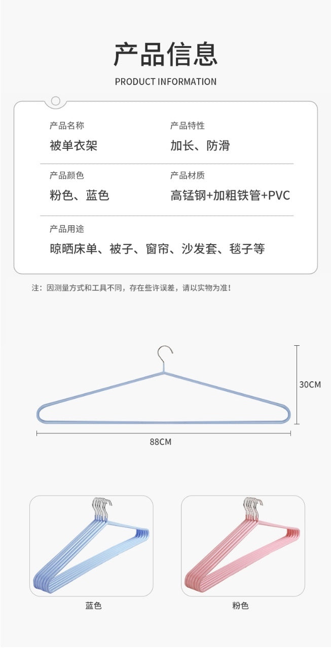 Made of PVC and thickened steel pipe, with a 120cm extended design, even large quilts can be easily laid out to dry . It's strong enough to support up to 20 kg, and even if the clothesline bends, the hangers remain intact. The smooth, burr-free surface won't damage quilts or your hands—a delight for detail-oriented people! Whatever your home's decorating style, you'll find a perfect match.