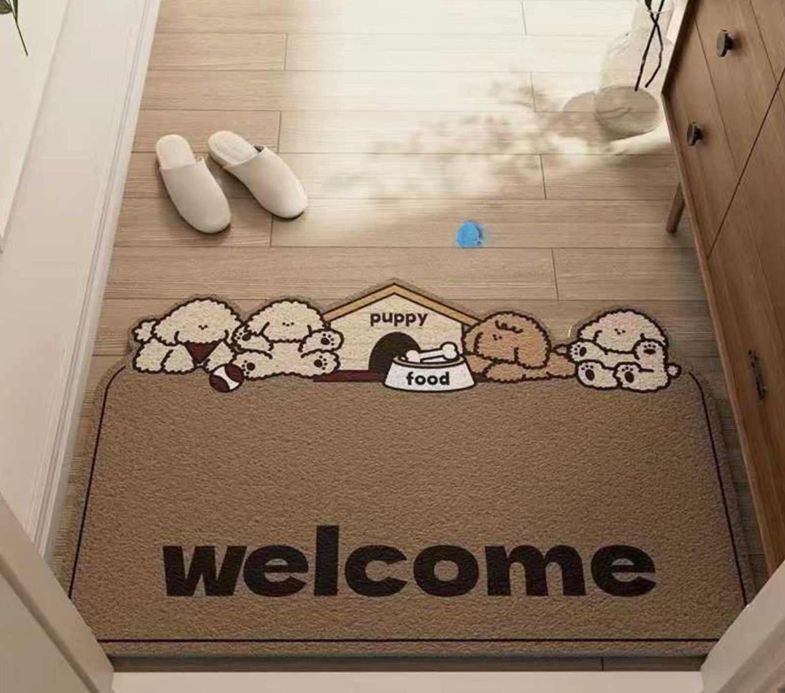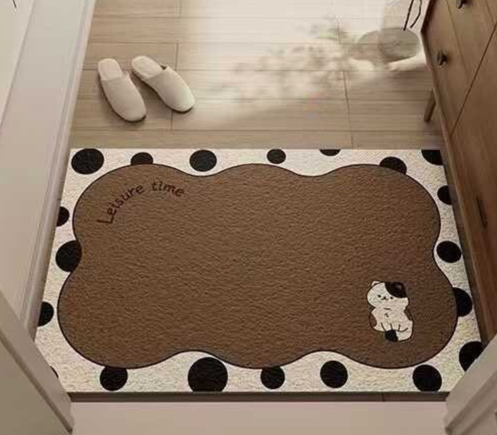 Easy to clean 🧽 , non-slip bottom, freely cut to size, can be cut at the four corners without getting stuck in door gaps, 50*80cm size, a moderate size suitable for use at the front door or indoor entrance. Made of PVC, it has good durability and water resistance, and is easy to clean and maintain. The printing process uses a clear and cute pattern that is not easy to fade. ✨