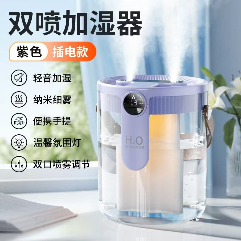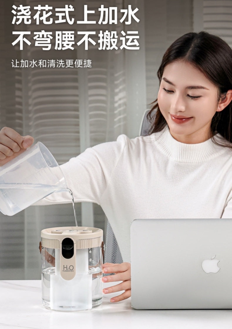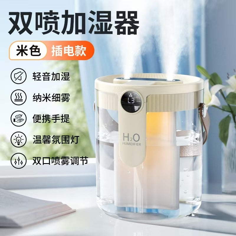 👉Dual nozzles for large mist output: Two mist outlets work simultaneously, producing a fine mist that doesn't accumulate, quickly filling the entire space and doubling the humidification efficiency!