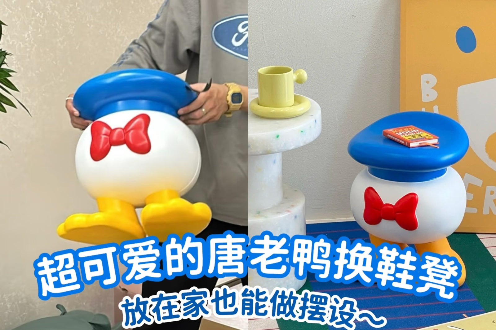 Donald Duck-themed shoe changing stool