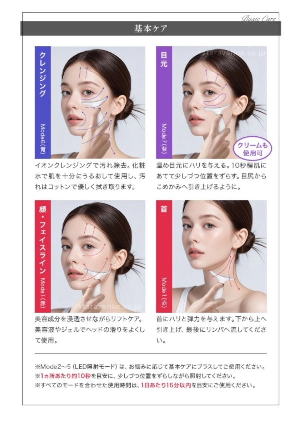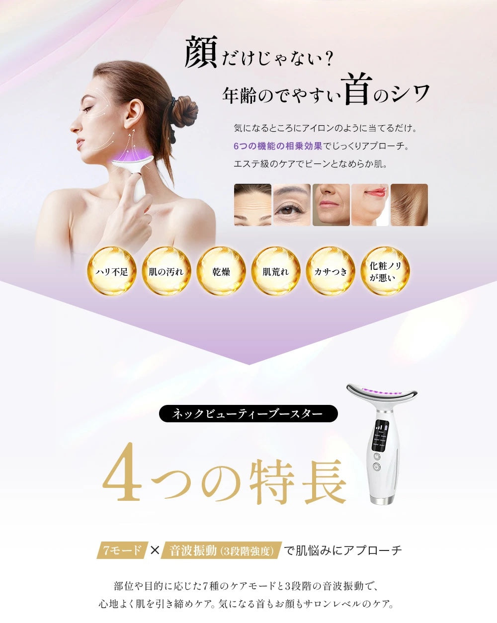 Neck care: Lifts the neck line and reduces neck wrinkles.