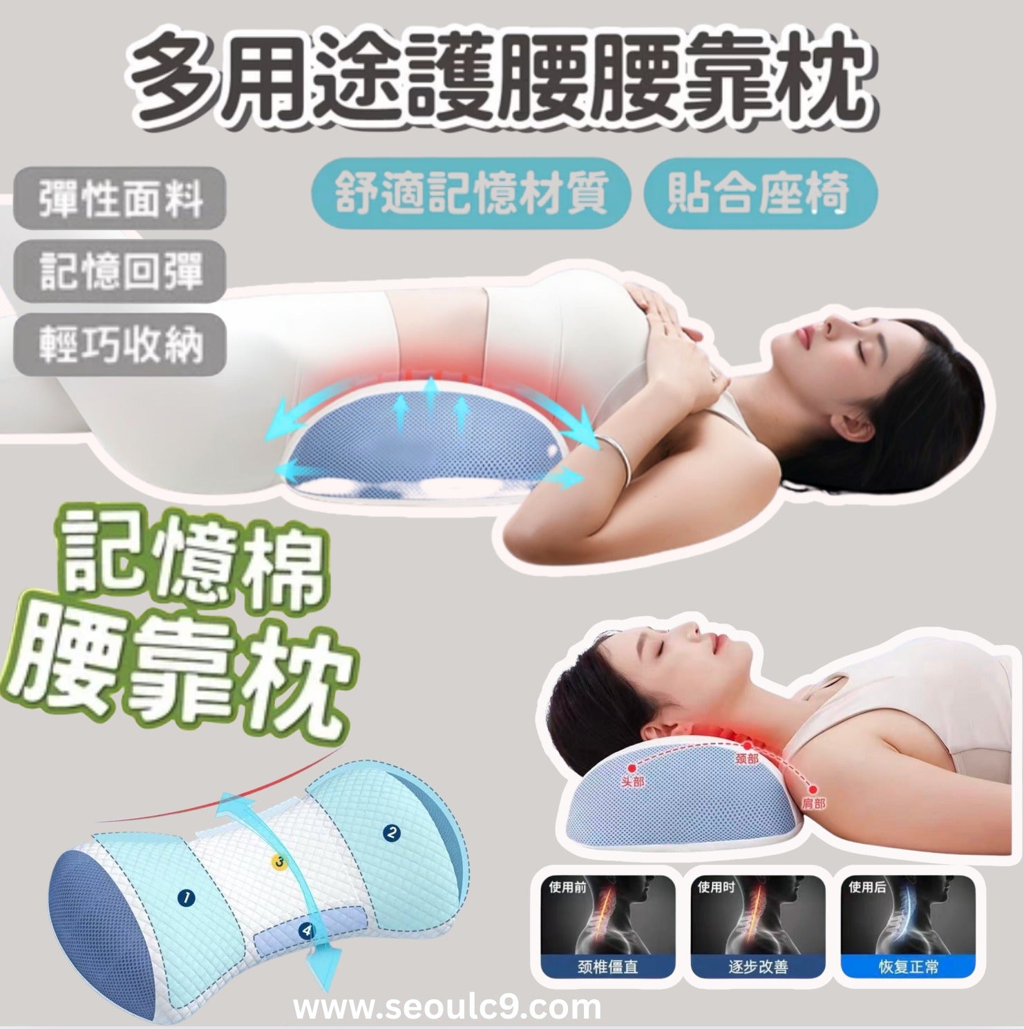 3D ergonomic design precisely conforms to the lumbar curve, providing even support for the lower back without feeling unsupported or constricted . The slow-rebound memory foam material offers excellent pressure distribution, preventing sagging even after prolonged sitting. The breathable mesh cover wicks away moisture, keeping you cool and comfortable even in summer. Adjustable Velcro straps are suitable for office chairs, car seats, and sofas, making it convenient for sitting in the car or using it daily to support your lower back, improve posture, and enhance overall body shape!