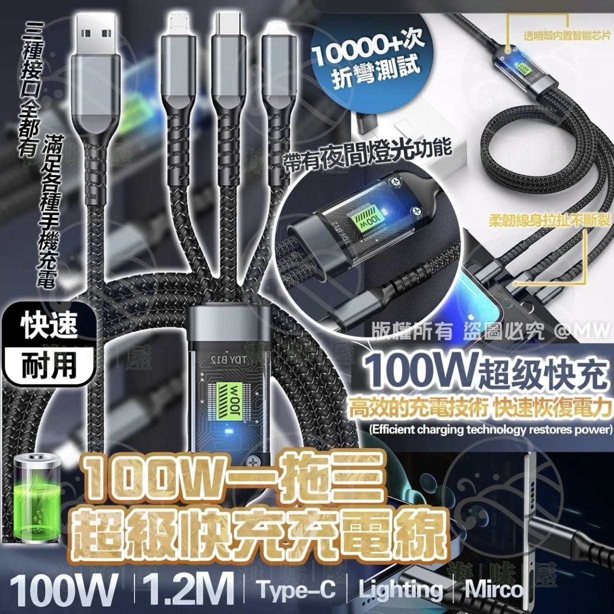 💕 100W 3-in-1 Super Fast Charging Cable 🈹 Nylon braided, super durable 💯 💯