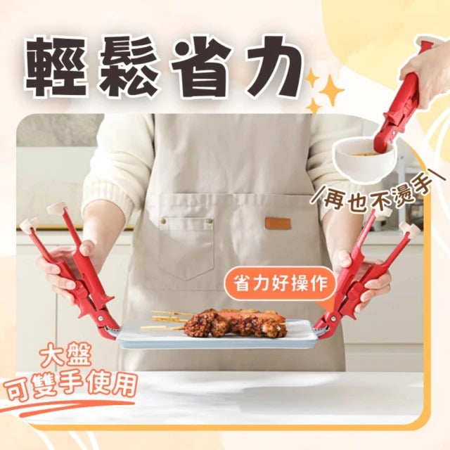 ABS + silicone + stainless steel, heat-resistant and non-slip, safe for food! Measuring 27×7×6.3cm, it's easy to hold and can hold all kinds of dishes and pots! A light press tightens the clamp, making it easy to operate even with light hands. Even kitchen novices can become "dish-serving experts" in seconds. It can hold even the most slippery dishes firmly, so you never have to worry about spilling them. ✌️