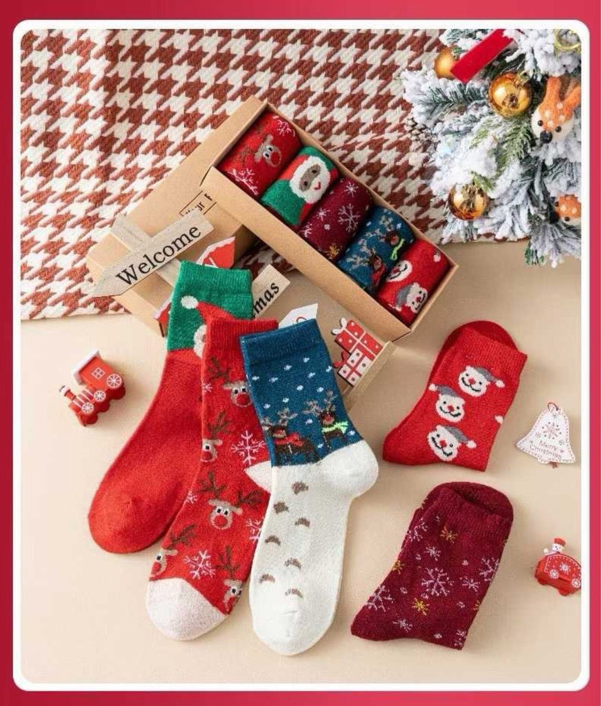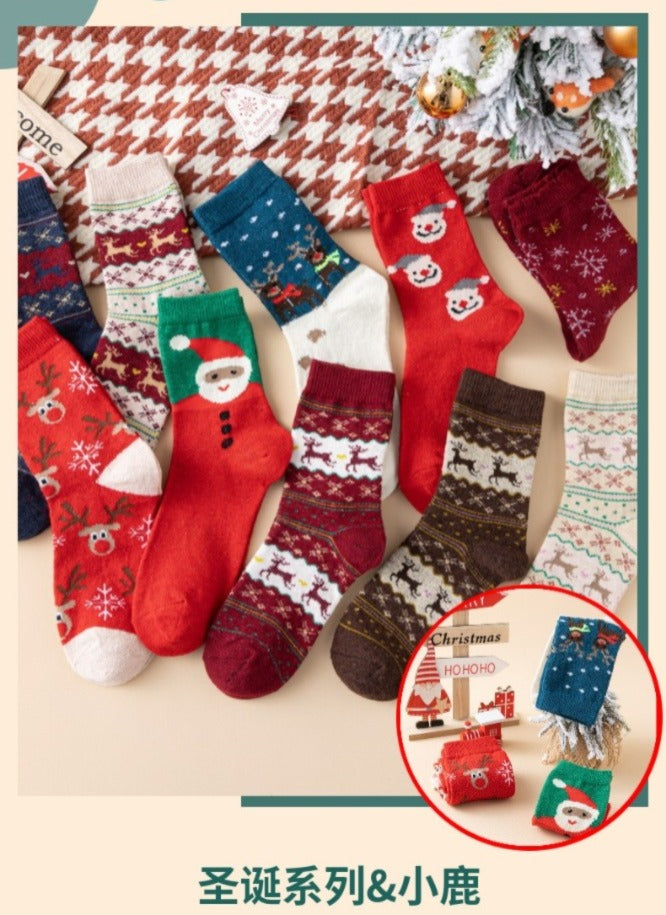 Christmas mid-calf socks set of 5 (2 boxes = 10 pairs)
