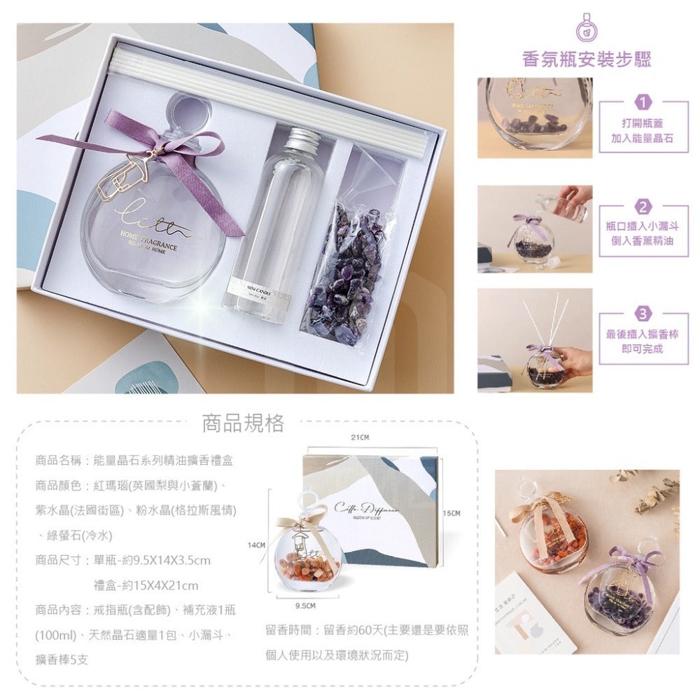 禮盒內含:空瓶芳香補充液1瓶100ML 天然晶石 適量小漏斗 小卡片
