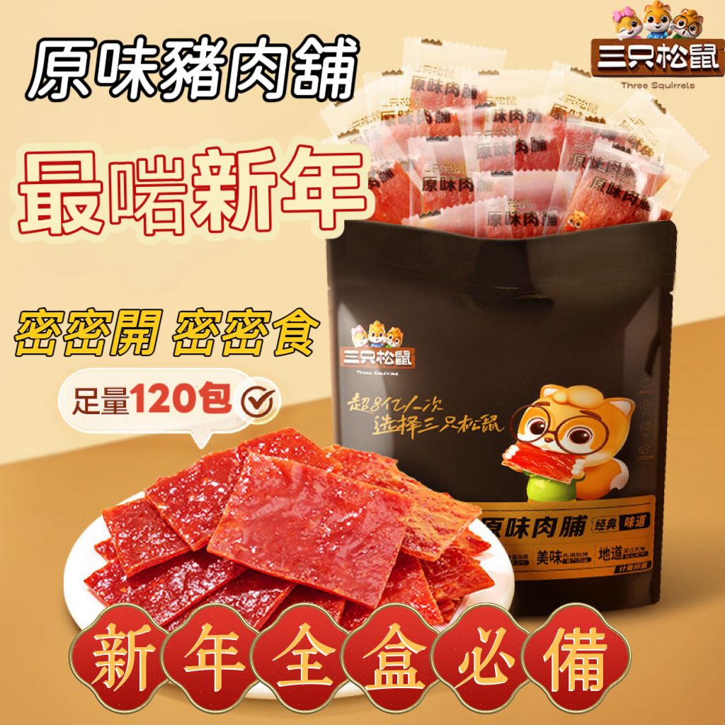 Three Squirrels Original Pork Jerky (120 small packets per bag)