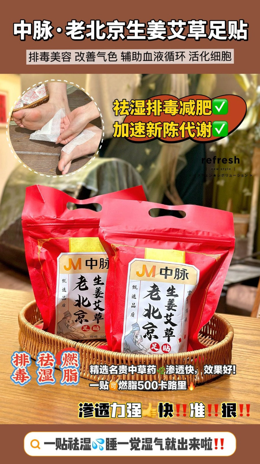 Zhongmai Old Beijing Ginger and Mugwort Foot Patches (2 bags per box = 100 patches)