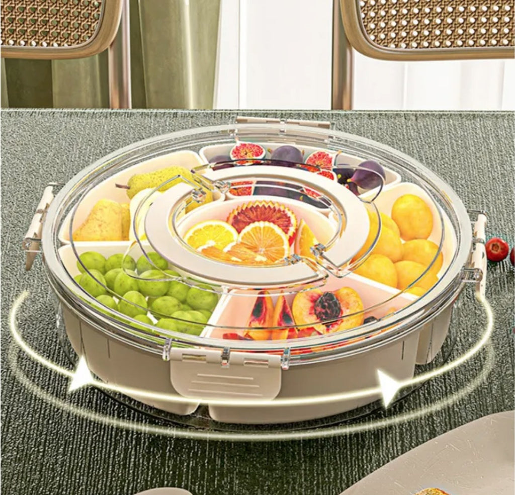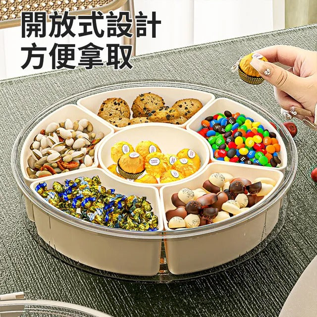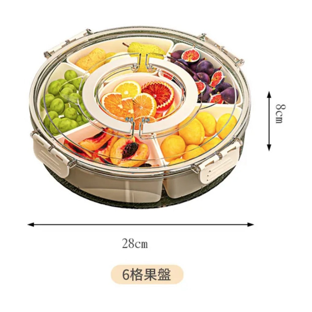 Six-grid rotating portable fruit plate with lid