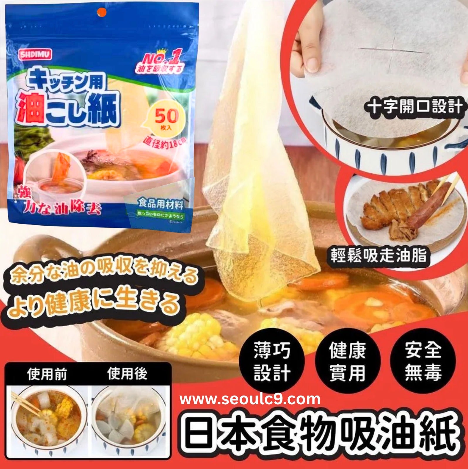 ❷ More precise oil absorption: It only absorbs oil, not soup. Ordinary paper towels/kitchen paper absorb both oil and water, ruining the flavor of the soup.