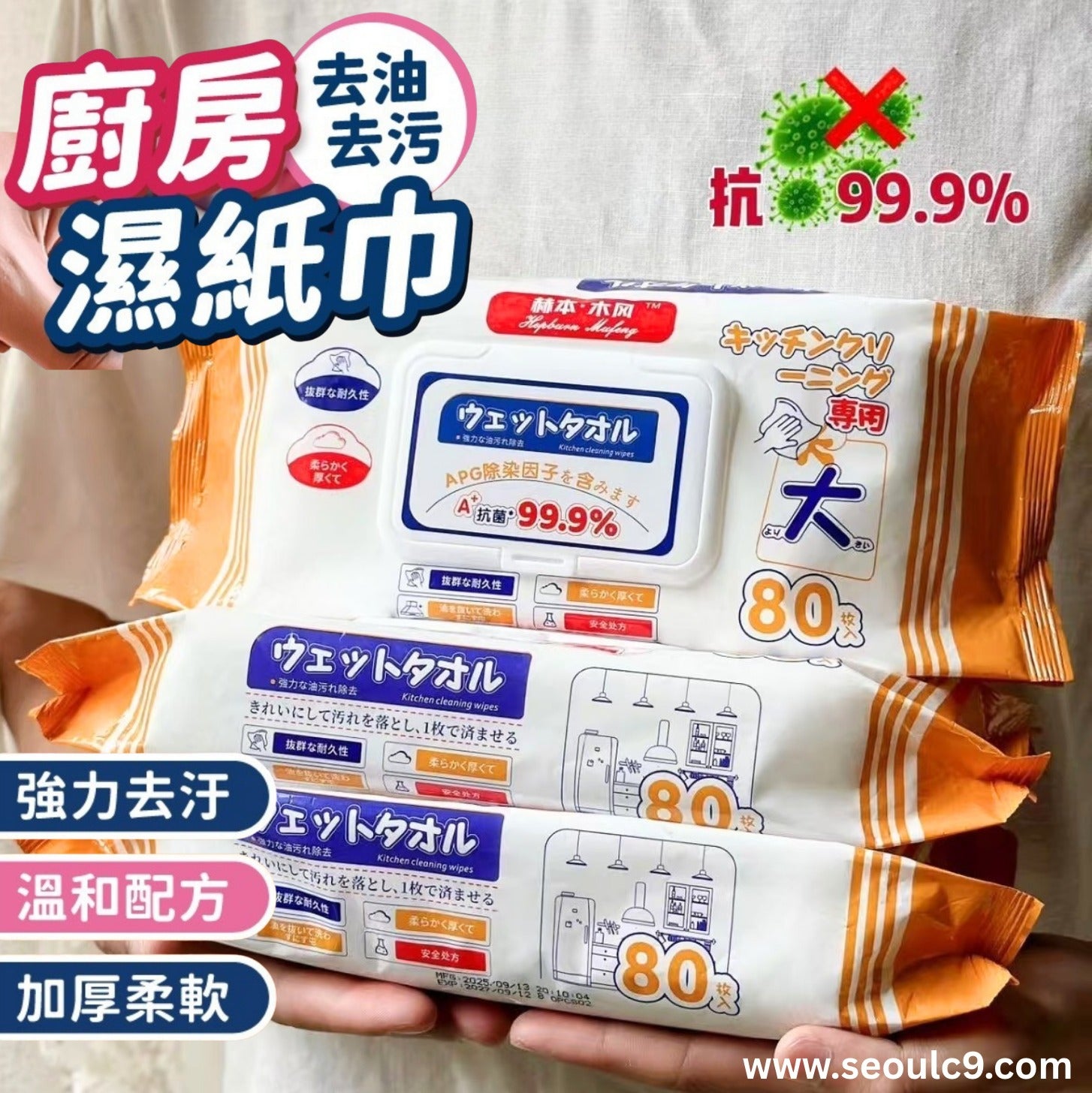 出口日本🇯🇵赫本木風 廚房清潔濕紙巾 (一套 3包=240片)