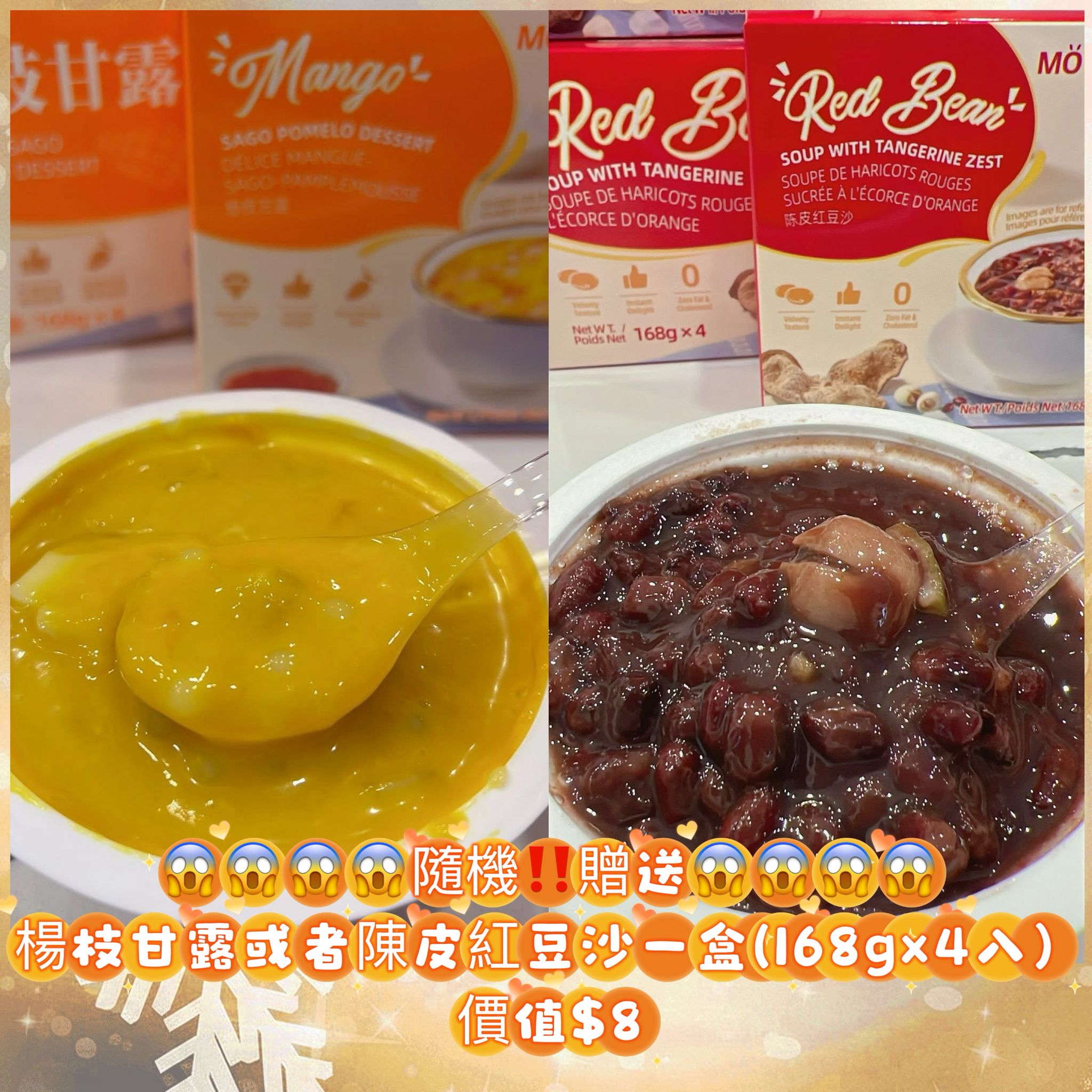 Buy one box of Mango Pomelo Sago or Tangerine Peel Red Bean Soup (168g x 4 small boxes)