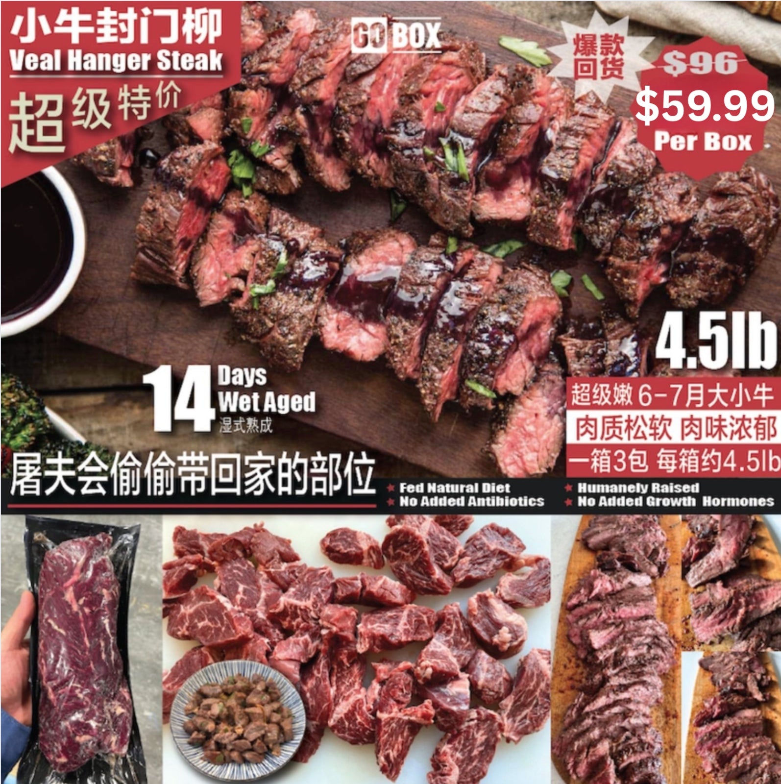 Premium Returns❗️ Fengmen fillet (Fengmen fillet) is a rare cut, rumored to be the one butchers secretly stash away! Stir-fry , grill , or pan-fry, our superb ❗️ hangersteak features a rich, tender meaty texture, a cut rumored to be the one butchers secretly stash away. This veal fillet is sourced from naturally raised 6-7 month old veal in Canada and dry-aged for 14 days. The flavor combines the tenderness of the veal with the inherently soft, rich texture of hangersteak!