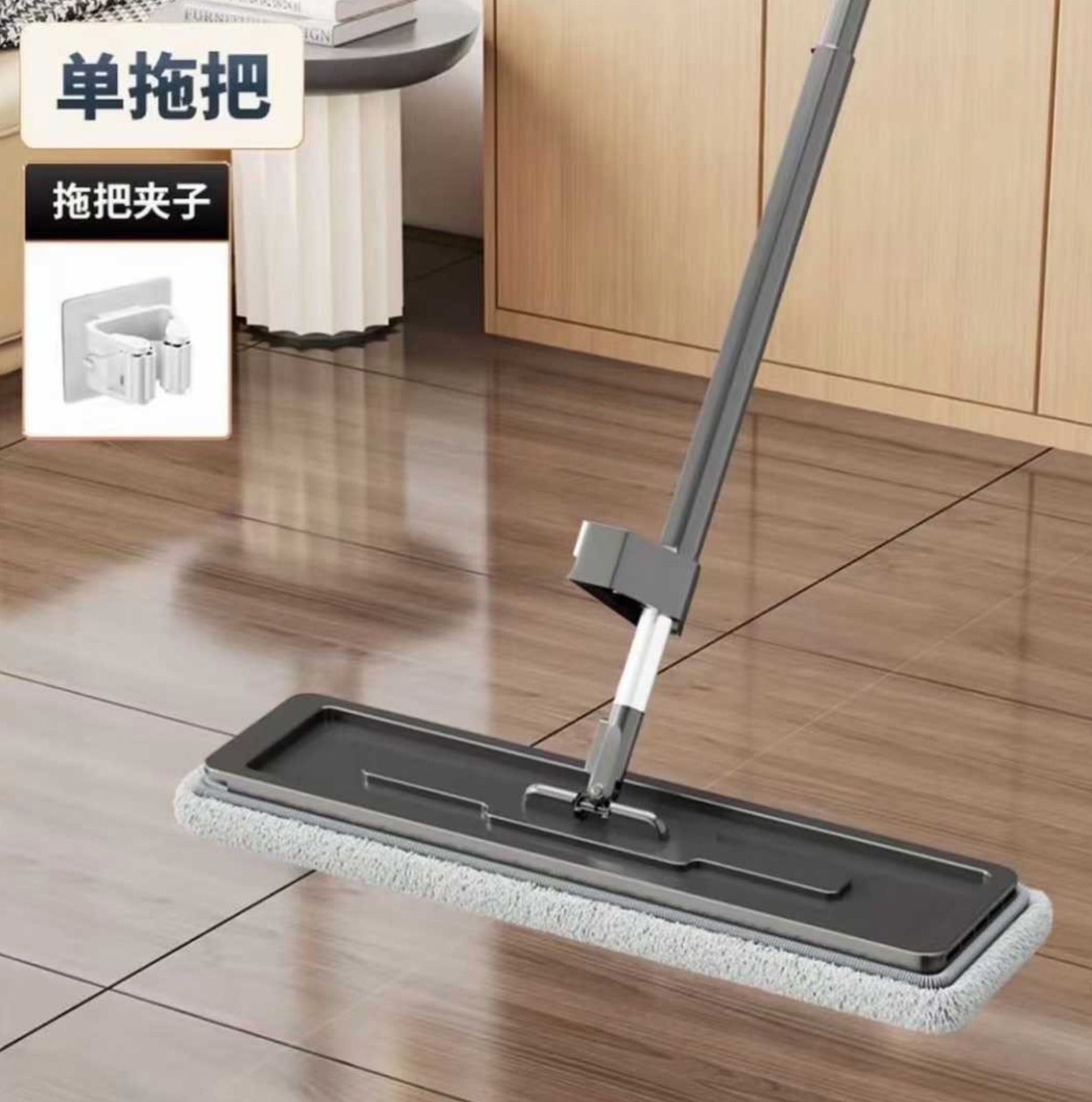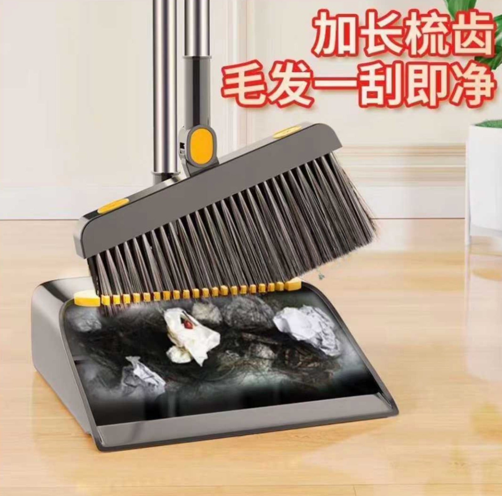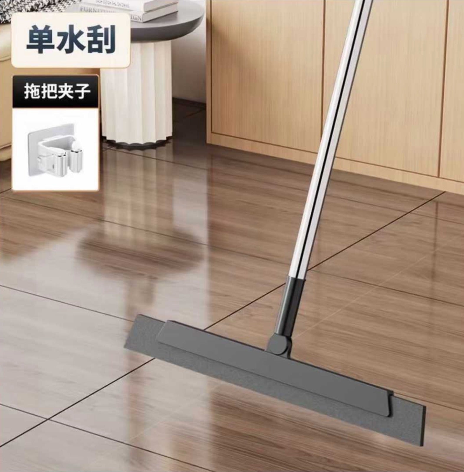 Bread crumbs spilled at breakfast can be easily cleaned up with a broom and dustpan – no need to squat down and pick them up! Milk stains spilled by the kids can be absorbed with a squeegee, and a couple more swipes with a mop will turn the floor into a "reflector" ! Dust under the sofa and on the corners of the table can be easily cleaned with a long-handled tool – no need to move the furniture !