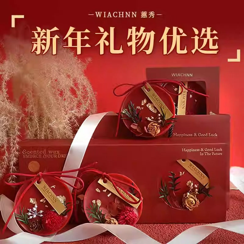 🌟New Year, new look, good fortune shines upon you🧧 ! The wax pieces tied with red strings represent the hope for a bright future💫 , and the gentle colors of dried flowers, fruits , and herbs are blended into just the right amount of red❤️ !