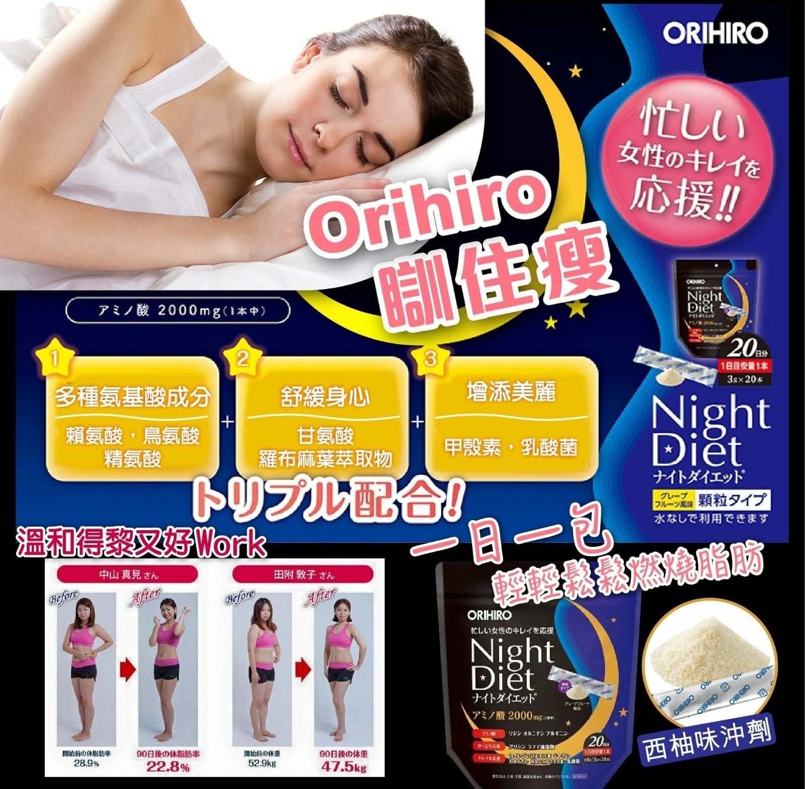 日本Orihiro Night Diet Powder瞓住瘦夜間減肥顆粒😍一日一包,輕輕鬆鬆就可以燃燒脂肪👍🏻
