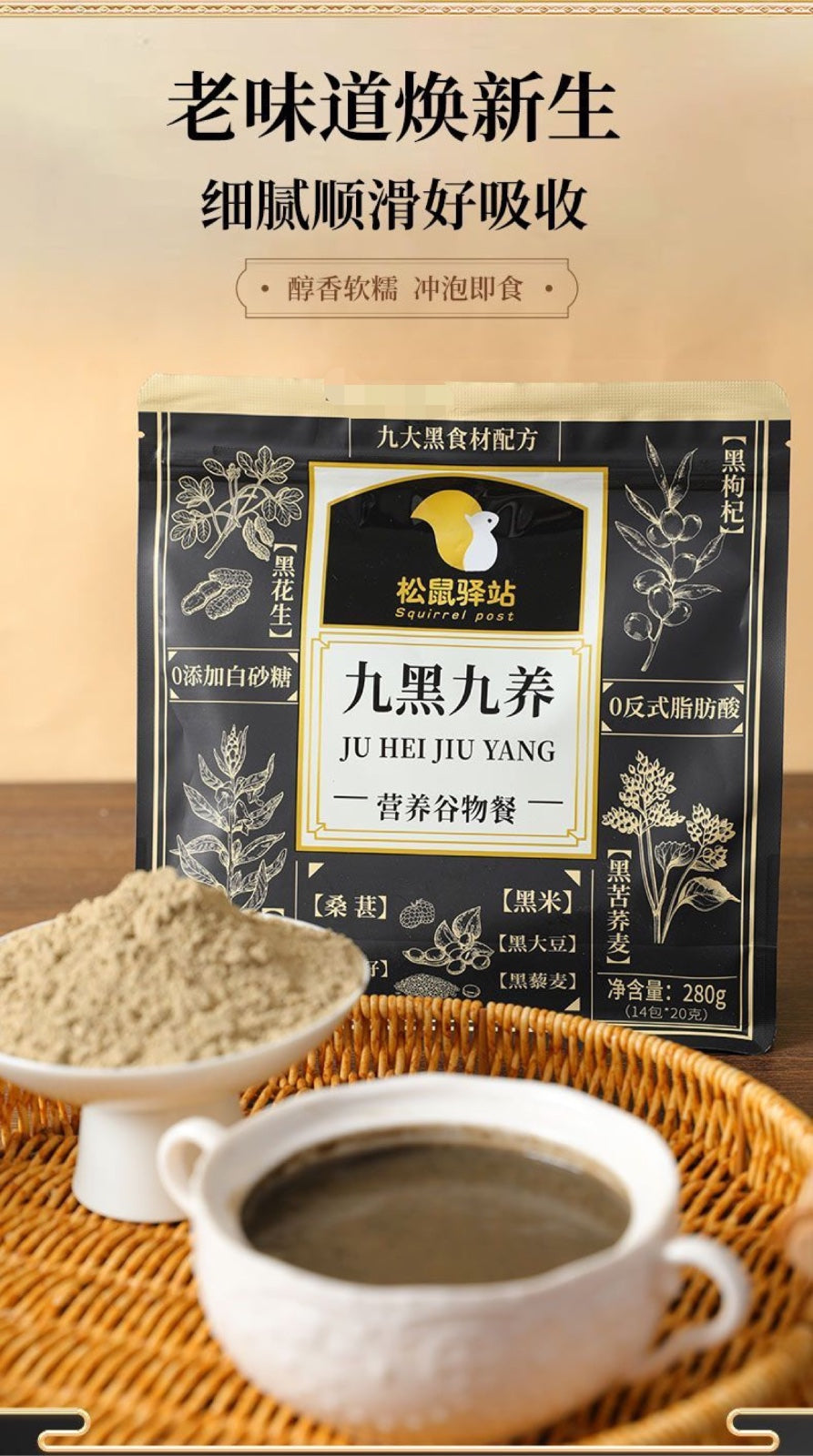 Squirrel Station Nine Black Nine Nourishing Nutritional Grain Meal (One set includes 2 large bags = 28 small packets)