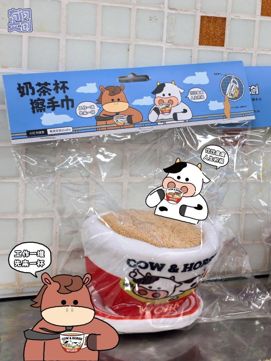 🐮 Black and white light milk tea cup hand wipe
