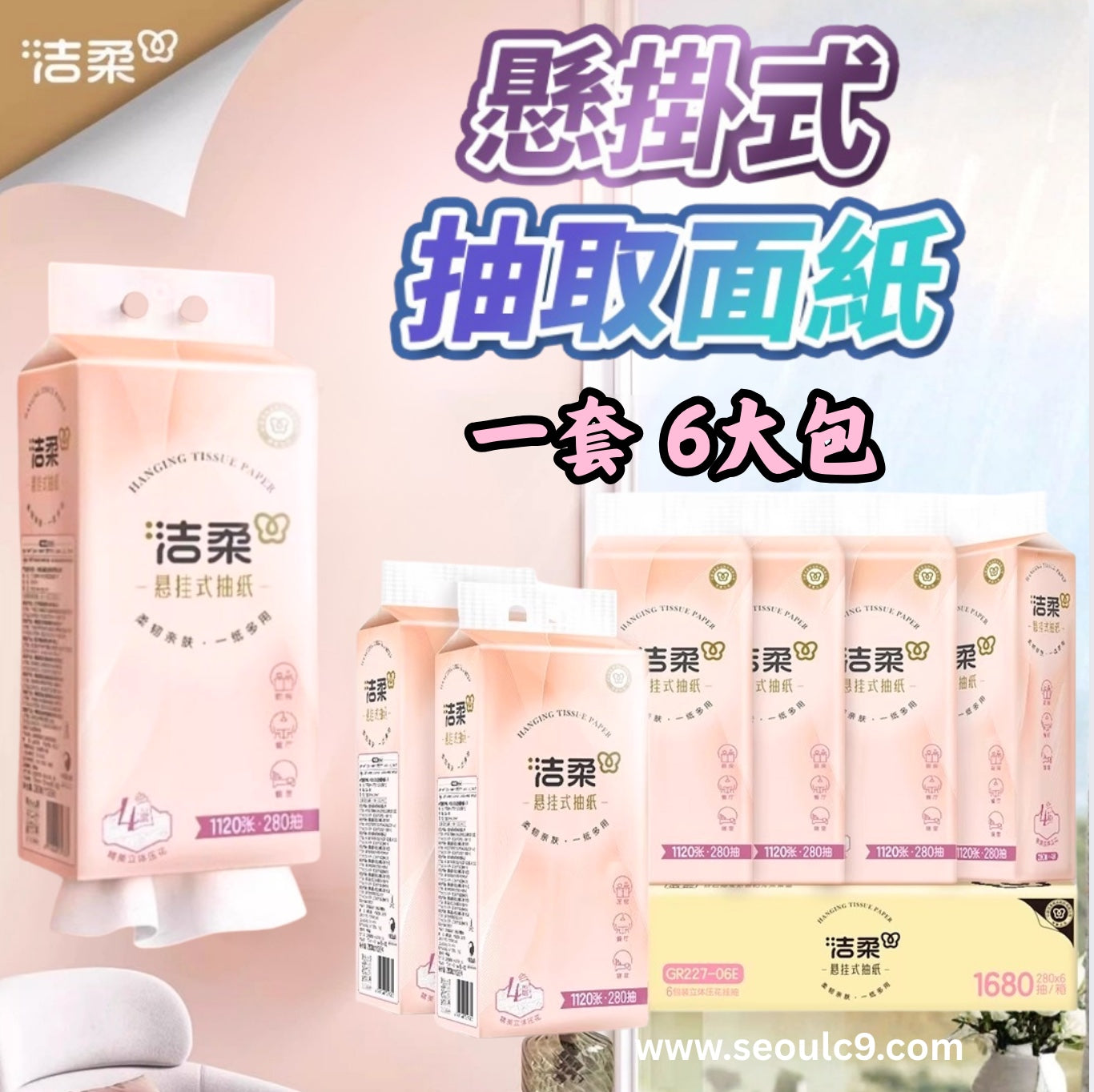 Clean & Soft hanging tissue box (set of 6 large packs)