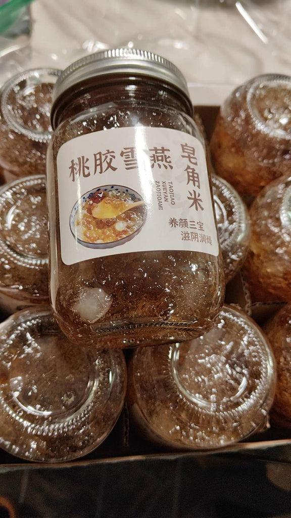 Freshly baked anhydrous peach gum snow swallow paste, simmered for 6 hours🤗 Available in three flavors: osmanthus, dark red rose, and original. Can be directly added to milk, soy milk, or sweet soup😋