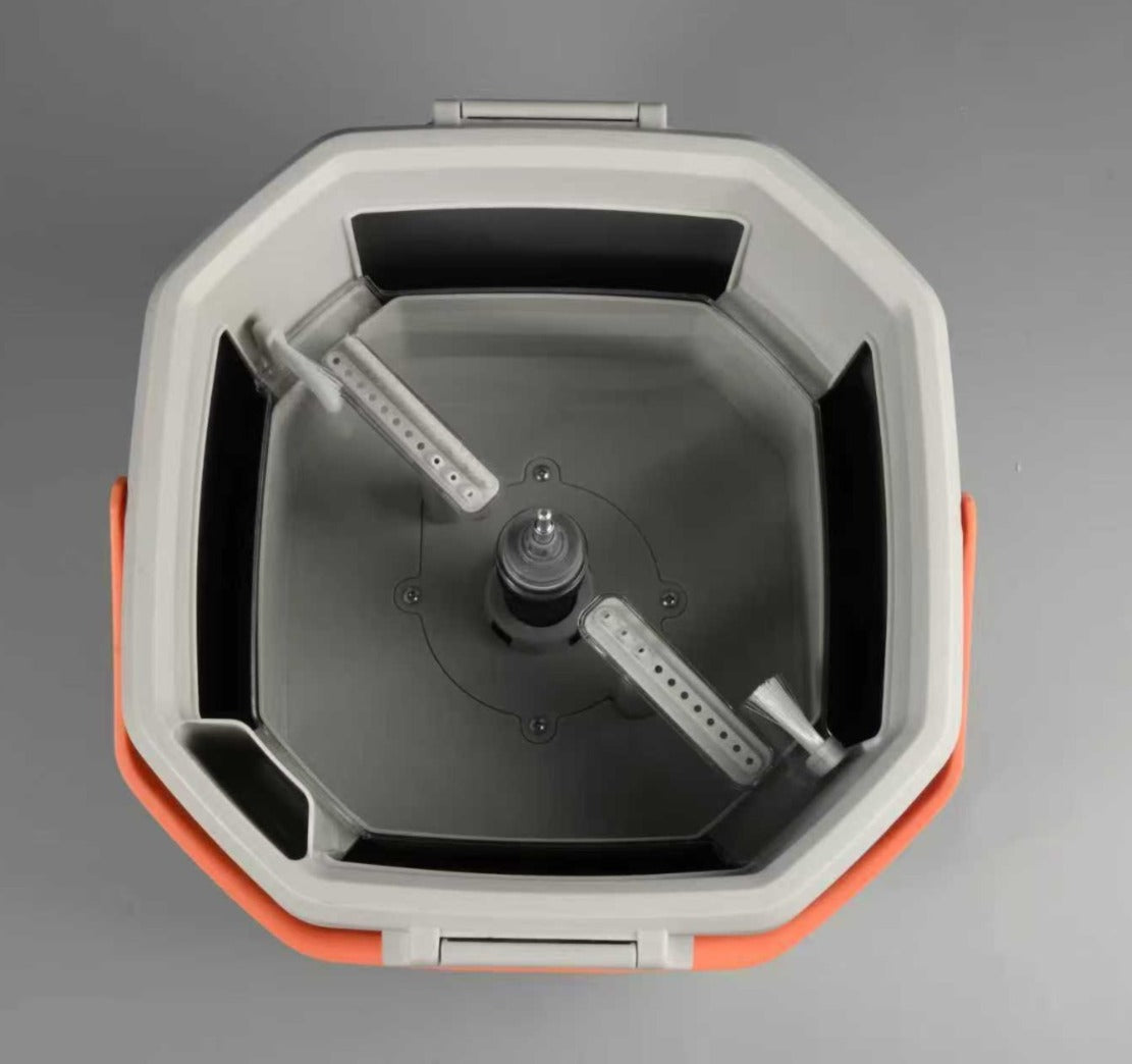 👍 👍 No hands required, saving you time and effort: Simply put the mop in the bucket, press it up and down a few times, and the mop will be rinsed clean by the high-speed rotating water. Dirty water and hair are scraped off by the scraper teeth, and then a few more presses will spin it dry. The whole process keeps your hands away from dirty water, making it very hygienic.