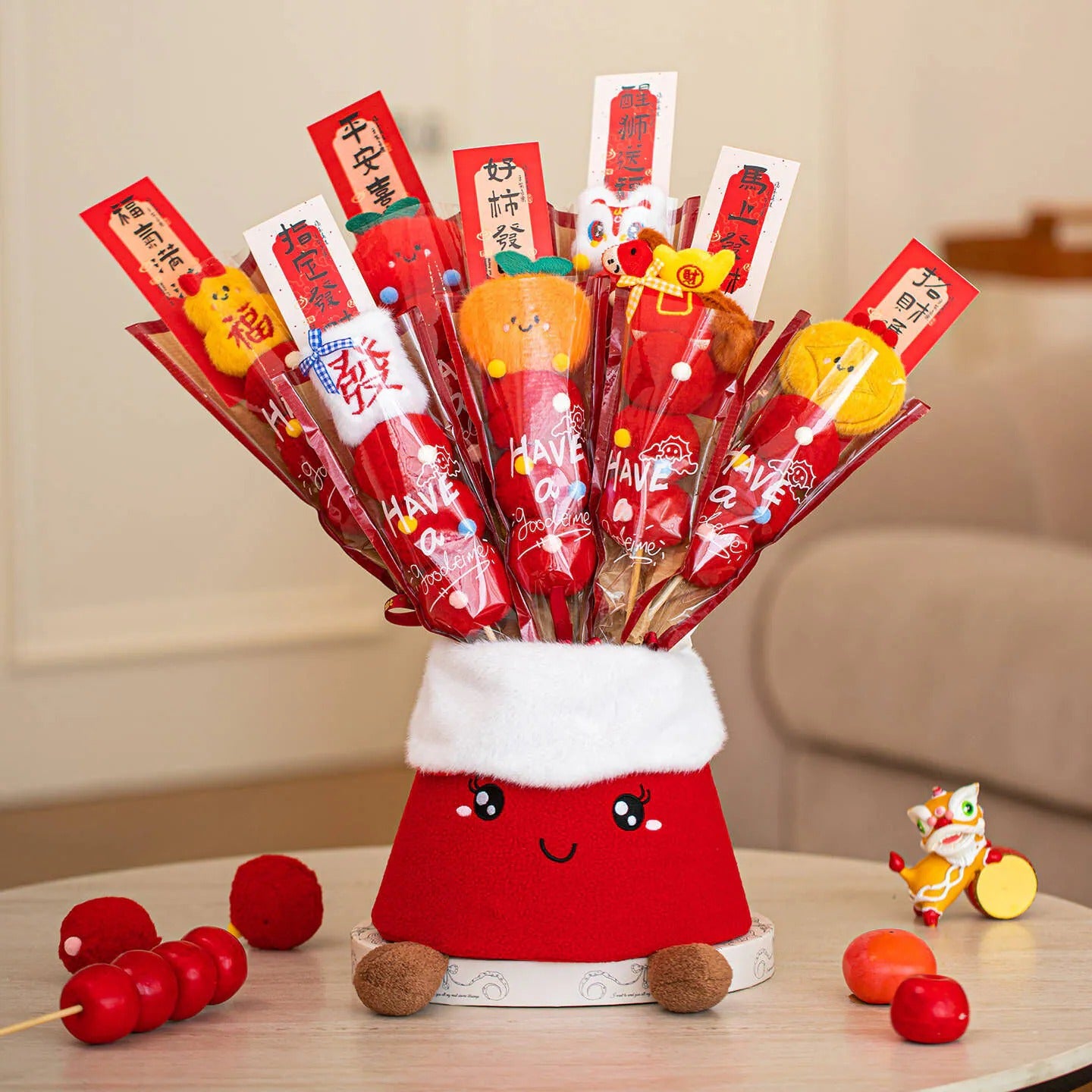 ❤️Candied Hawthorn Plush Hug Bucket❤️ It's absolutely amazing! 💯 It cleverly blends the auspicious meaning of the classic candied hawthorn with modern aesthetics, giving traditional culture a fresh new lease on life.