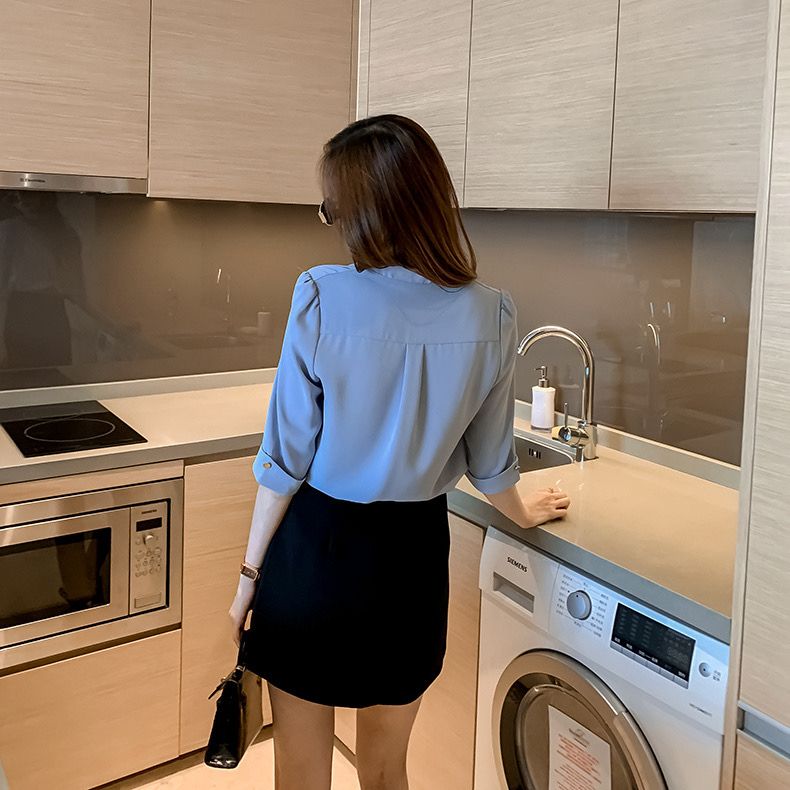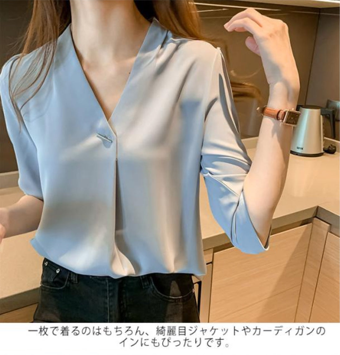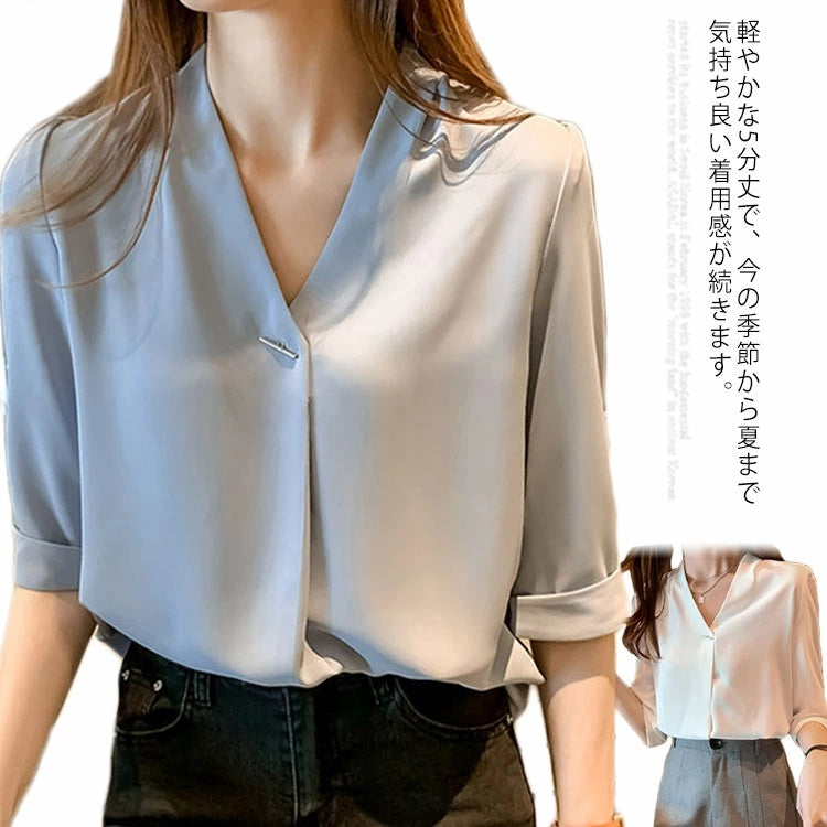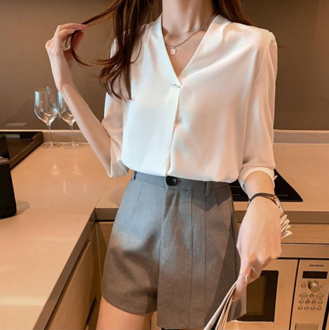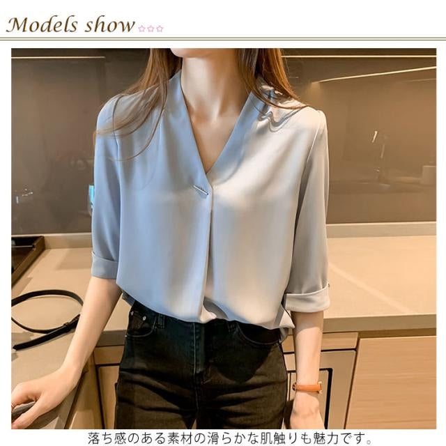 🧡V-neck Plain Chiffon Top🧡💚🧡