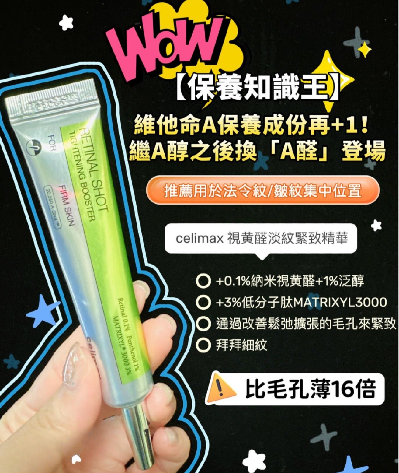 🔖Main ingredients: 0.1% nano-retinaldehyde + 1% panthenol + 3% low molecular weight peptide MATRIXYL3000