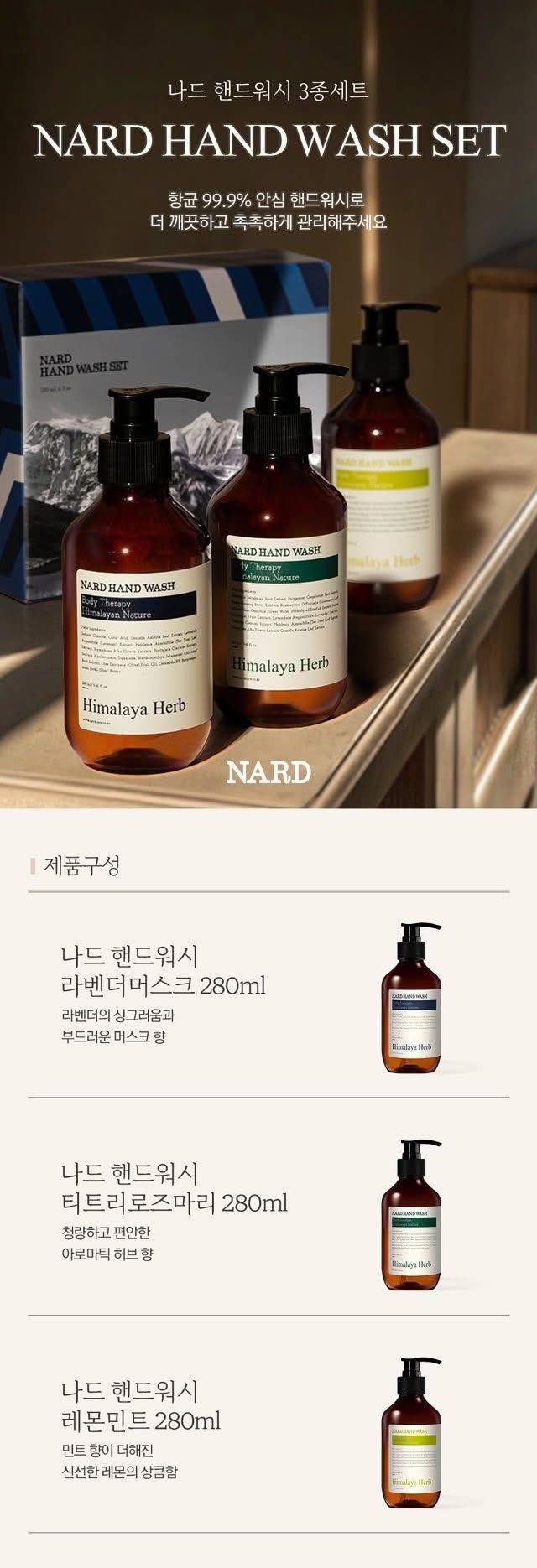 Made in Korea 🇰🇷 NARD Fragrance Hand Wash Gift Set 280ml (Set of 3) (Set of 2 = 6 bottles)