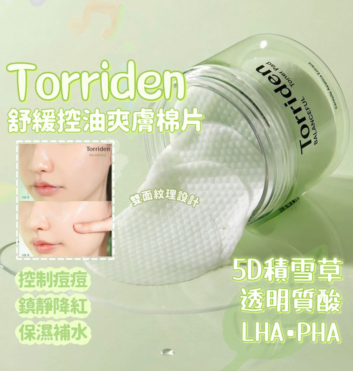 I personally recommend this product for oily and combination skin with problems like clogged pores, blackheads, or dirt. It can also be used for touch-ups or gently wiped on oily areas like the chest and back. It features a double-sided texture and a large 6.5cm cotton pad containing hypoallergenic, mildly acidic LHA and PHA ingredients to gently control oil and exfoliate, leaving a refreshing and non-irritating feel. 💆♀️ 💧