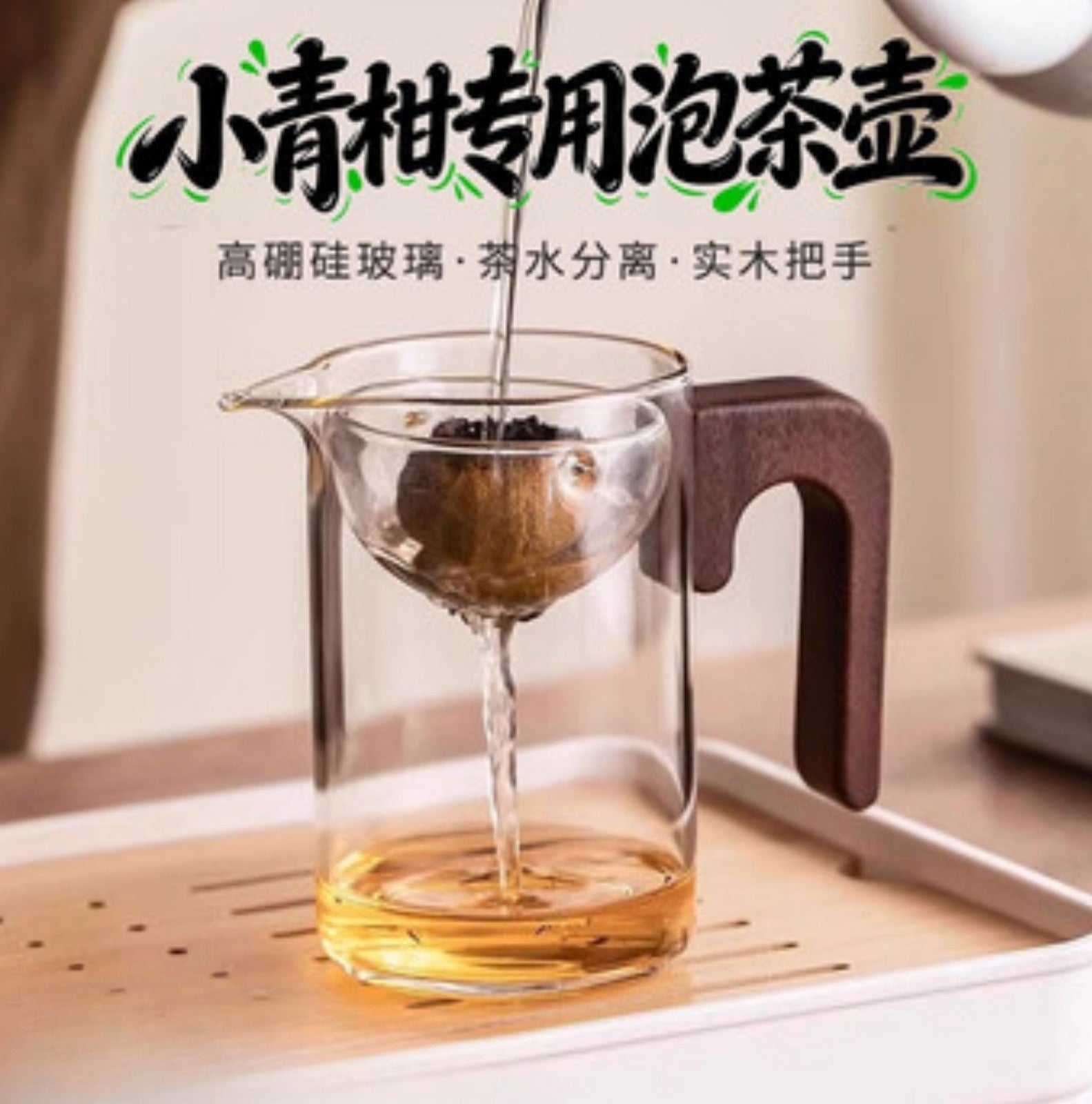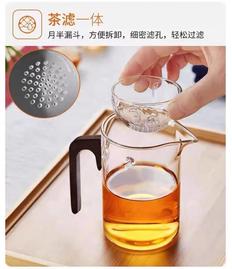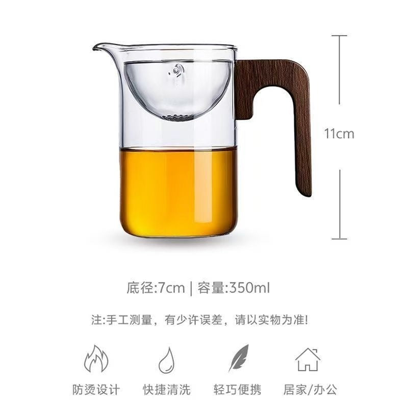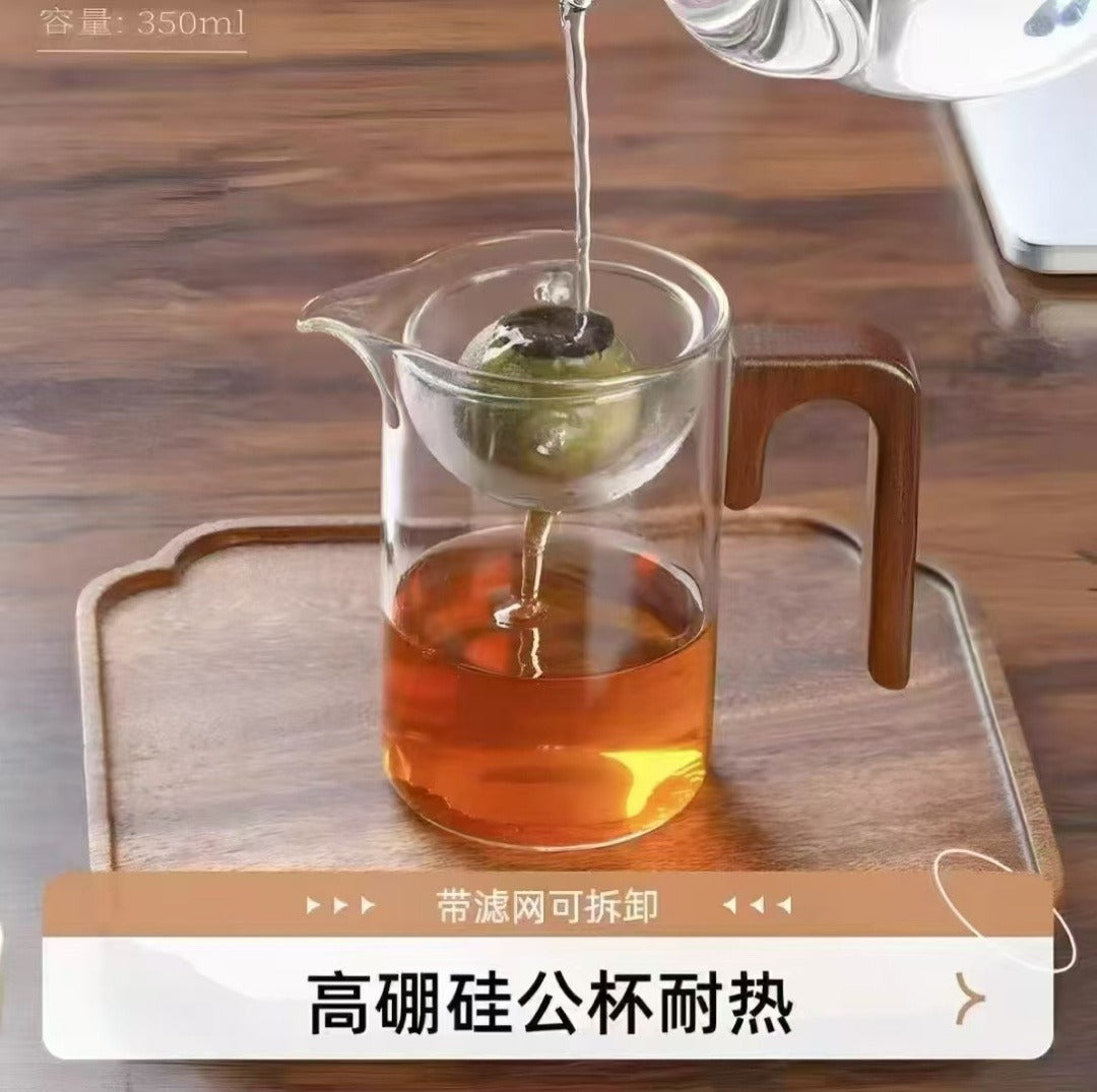 🍵High borosilicate glass fair cup with wooden handle|Integrated tea strainer, making and serving tea more elegantly✨