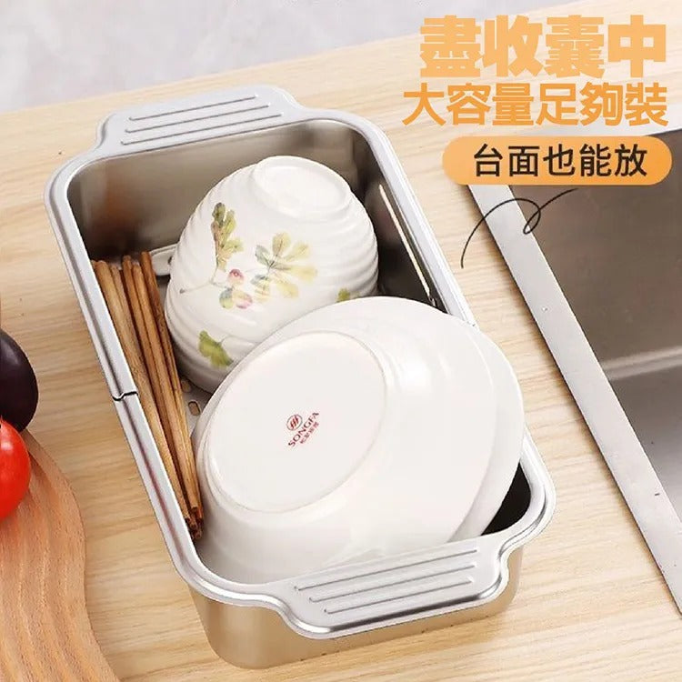Flexible and adaptable to all sink sizes: 33.5×12.5cm before extension, 45.3×12cm after extension, it can fit comfortably in any sink width, whether placed horizontally or vertically.