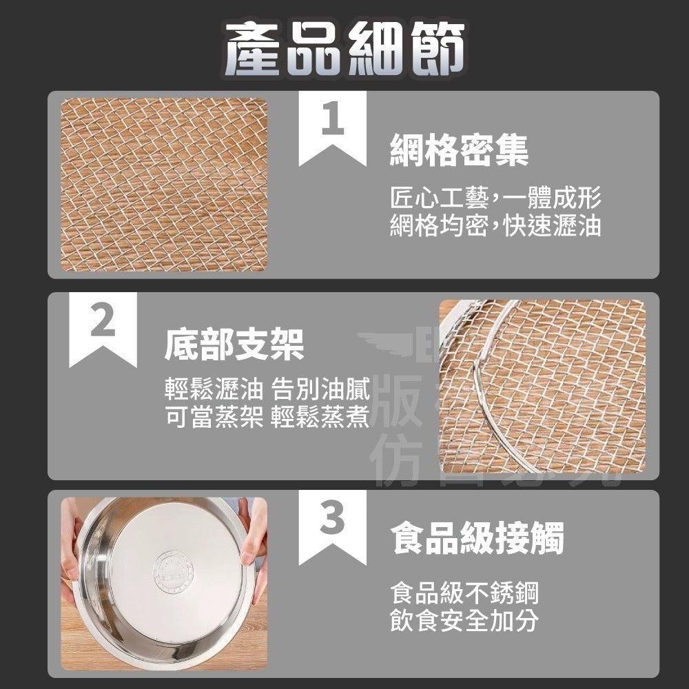 👉Double -layer design for quick oil/water removal: The upper layer features a large mesh strainer to drain oil and water, while the lower tray catches food scraps, keeping your kitchen countertop clean.