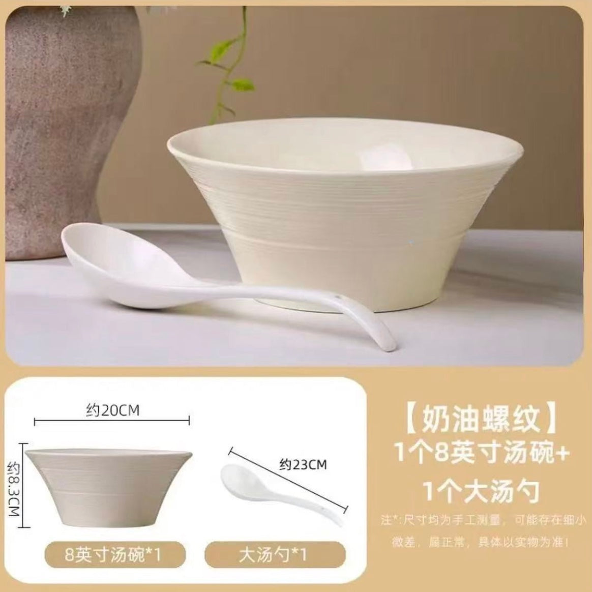 Made with a high-temperature healthy glaze process, it's safe even when in direct contact with food, so you can eat it with complete peace of mind ! It measures 20.2 x 8.5 cm and has a capacity of 1300 ml. Whether you're serving a large bowl of instant noodles, a warm soup, or a hearty salad, it's perfect. The included 23 cm long spoon makes scooping soup super convenient!