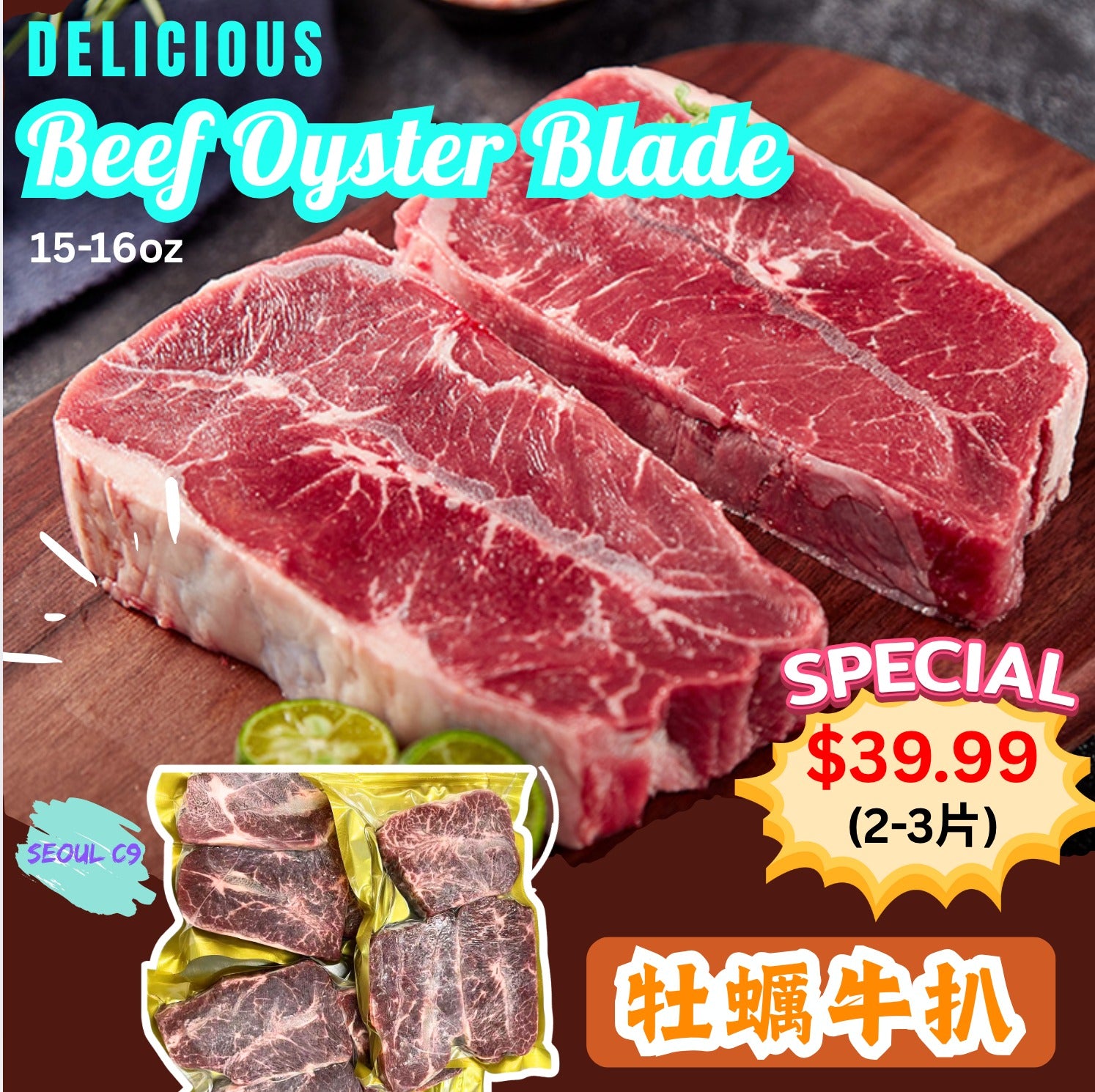 🥩If you've tried filet mignon and sirloin steaks but haven't yet had an oyster steak, you're missing out! This is a truly exceptional cut, a delicacy only discerning diners will appreciate – the incredibly juicy and flavorful oyster steak. It's a rare gem among beef cuts, with only 5-6 pounds produced per cow in its lifetime. It's tender, juicy, and doesn't toughen even after prolonged cooking, just like a plump and succulent oyster with a rich, creamy aroma. These unique characteristics make the oyster steak a true champion in the steak world!