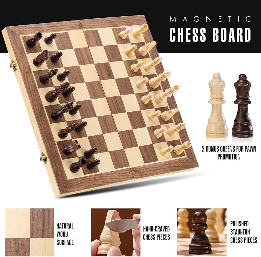• The chess pieces have built-in strong magnets that firmly hold them on the chessboard.