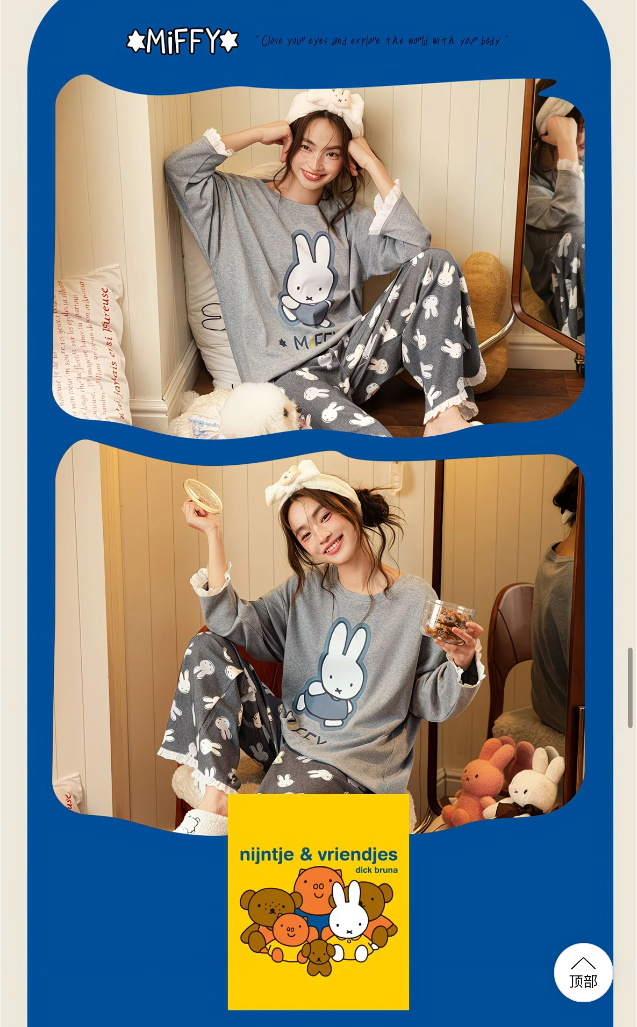 Miffy 100% Cotton Simple Long-Sleeved Pajamas/Loungewear