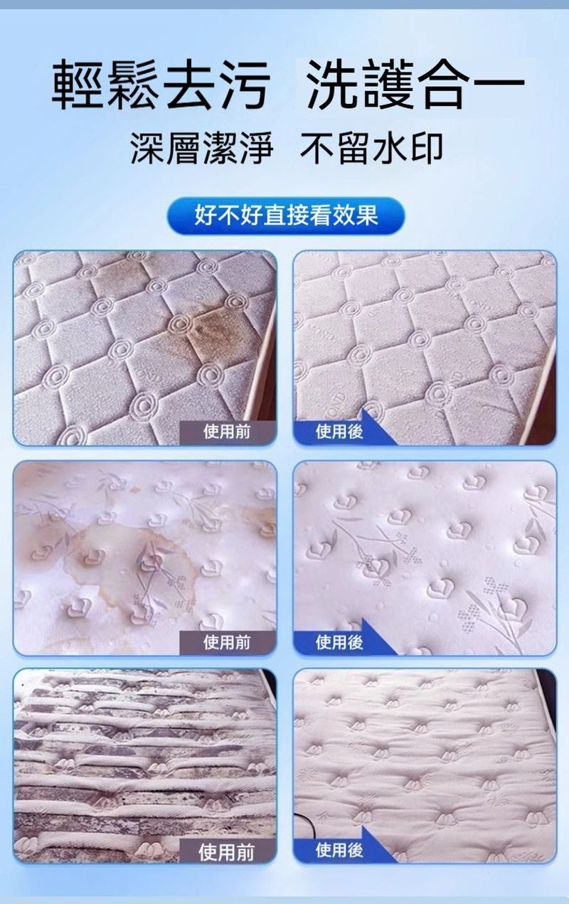 Not just for mattresses! It can also handle hard-to-clean soft furnishings like fabric sofas, engineered fabric sofas, carpets, wallpaper, and curtains! One bottle, multiple uses—it's truly an all-rounder for home cleaning! 💪