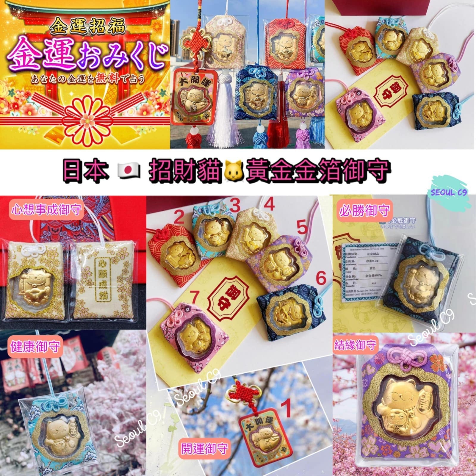 D) 金色 🟡心想事成御守