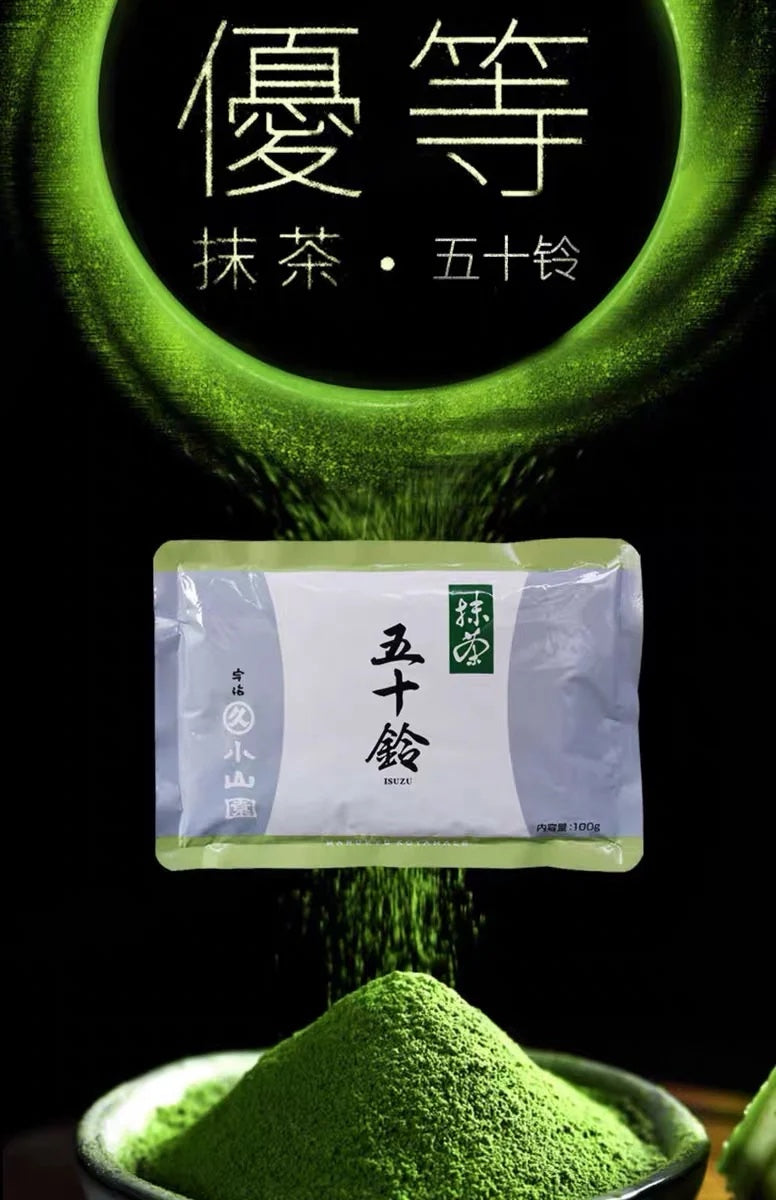 五十鈴,屬於薄茶的一種,屬於小山園系列中烘焙最高級的抹茶,因為苦澀味低,色澤鮮綠明亮,口感獨特海苔味更加濃郁。是製作高級烘焙料理的不二選擇。