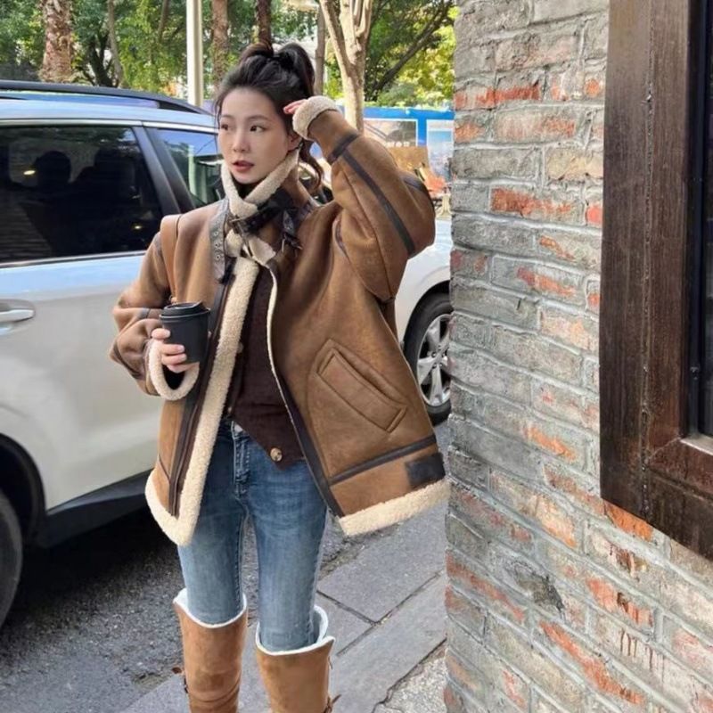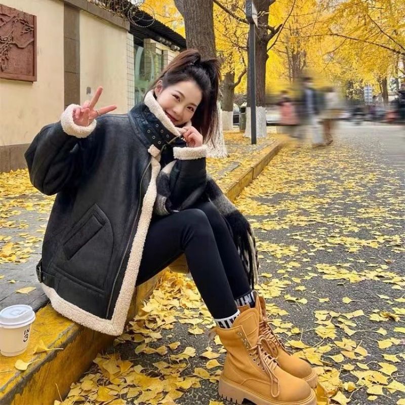 麂皮羊羔毛的組合上身就是滿滿慵懶風