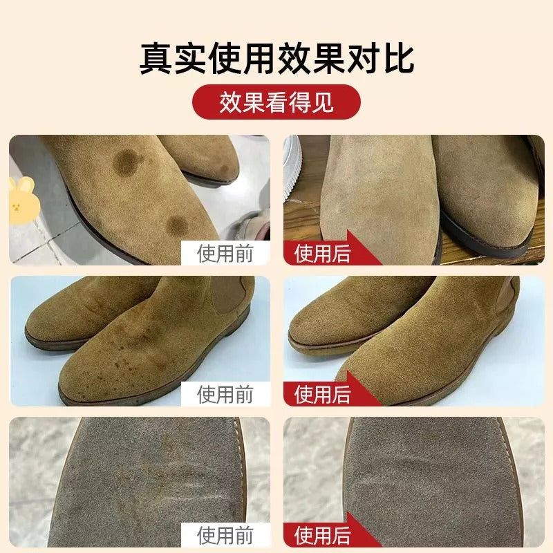 🌟刷頭採用“軟質尼龍細毛”,密度高達200根/平方厘米,能深入絨毛縫隙去污,又不會勾壞嬌貴的翻毛皮;瓶身是“按壓出膏”設計,按一下出量剛好,不會擠多浪費,還能避免護理劑氧化;護理劑採用“微分子清潔配方”,清潔成分能牢牢吸附污漬,擦完不會在鞋面留下白斑;刷頭角度經過人體工學設計,刷鞋頭、鞋邊等死角時不用別扭發力,輕鬆就能刷乾淨~